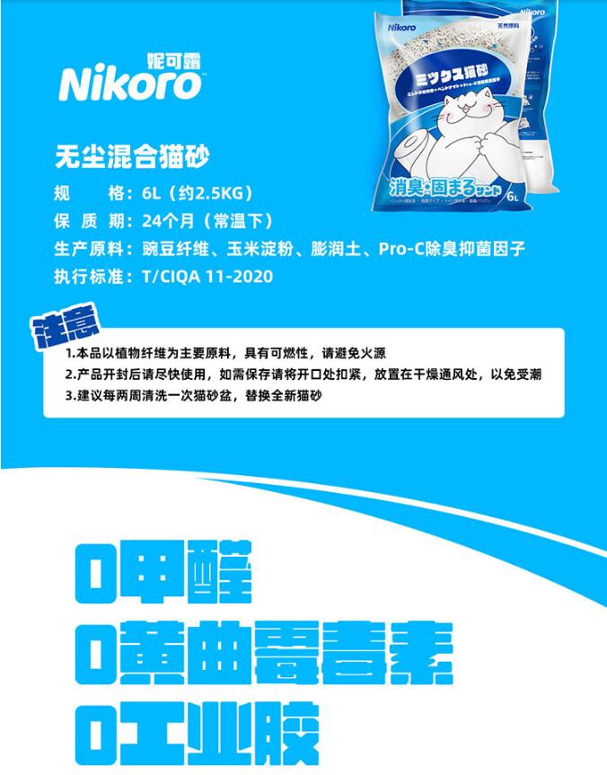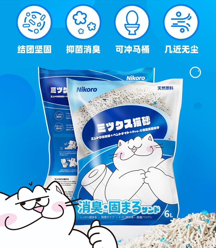 妮可露猫砂2.5KG/6L妮可露混合猫砂豆腐猫砂矿土猫砂消臭抗菌因子,单包链接