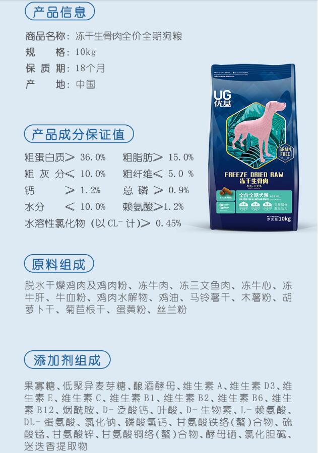 优基冻干生骨肉狗粮10KG优基生骨肉狗粮优基狗粮优基全价全期冻干生骨肉狗粮