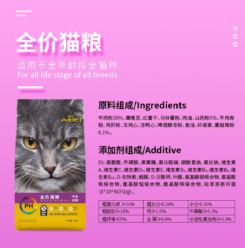 爱倍优生胃系列猫粮15KG爱倍全价全期猫粮爱倍猫粮15KG爱倍全价猫粮爱倍家庭装猫粮爱倍繁育猫粮爱倍无谷猫粮