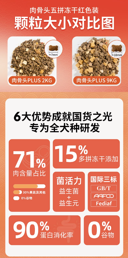 手工下单!心粮肉骨头plus多拼冻干狗粮(红袋)9KG心粮狗粮心粮冻干狗粮心粮肉骨头冻干狗粮心粮成幼犬通用全价狗粮9kg