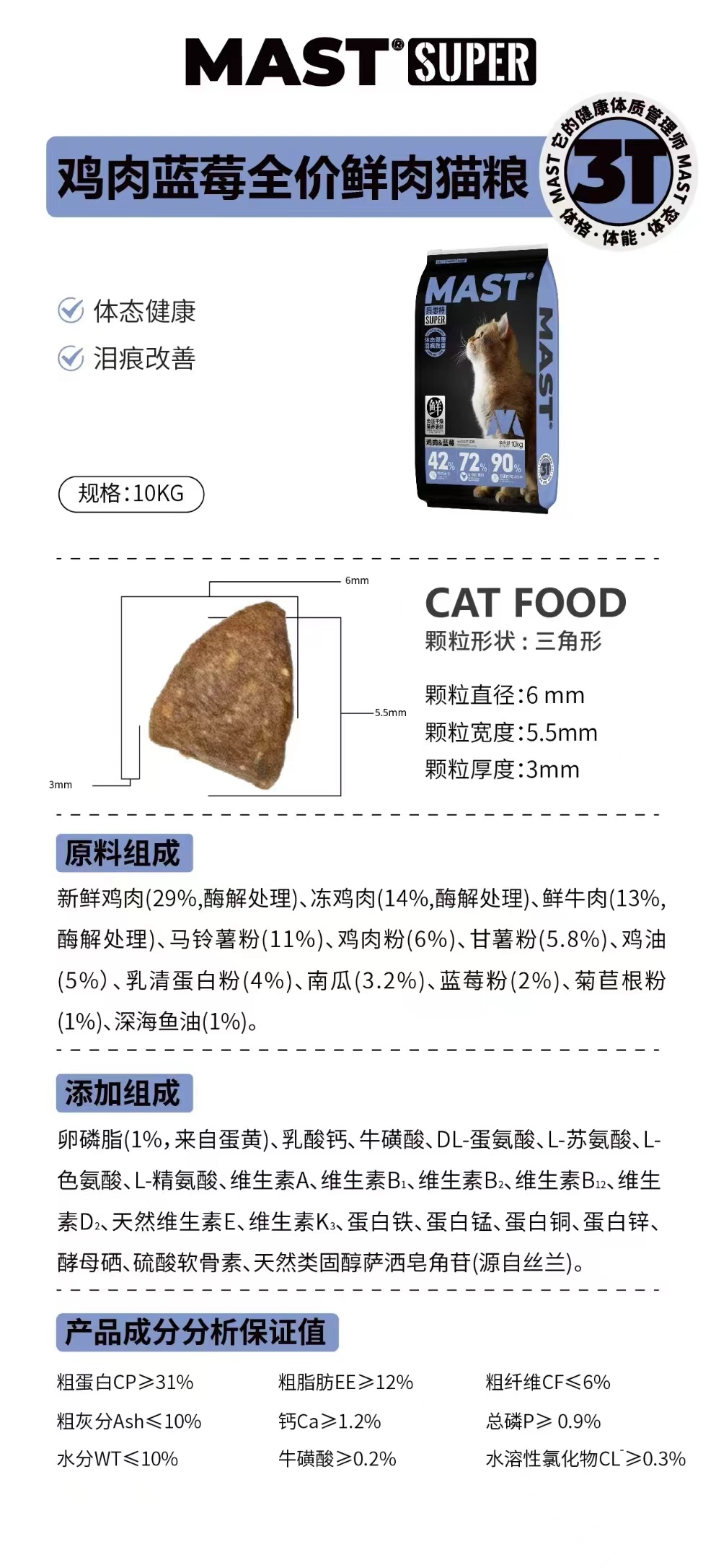 手工下单!MAST鸡肉蓝莓全价鲜肉猫粮10kg犸思特Super系列猫粮mast鸡肉蓝莓猫粮mast猫粮成幼猫通用全期猫粮