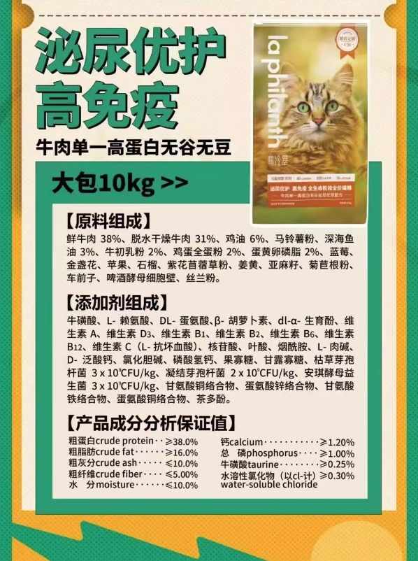 翡冷翠F38泌尿优护牛肉繁育猫粮10kg翡冷翠元能觉醒系列繁育猫粮翡冷翠F38猫粮全期全价成幼猫通用猫粮