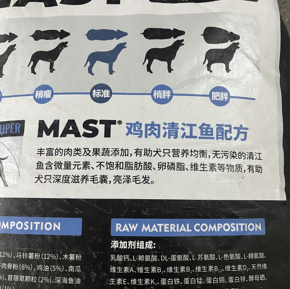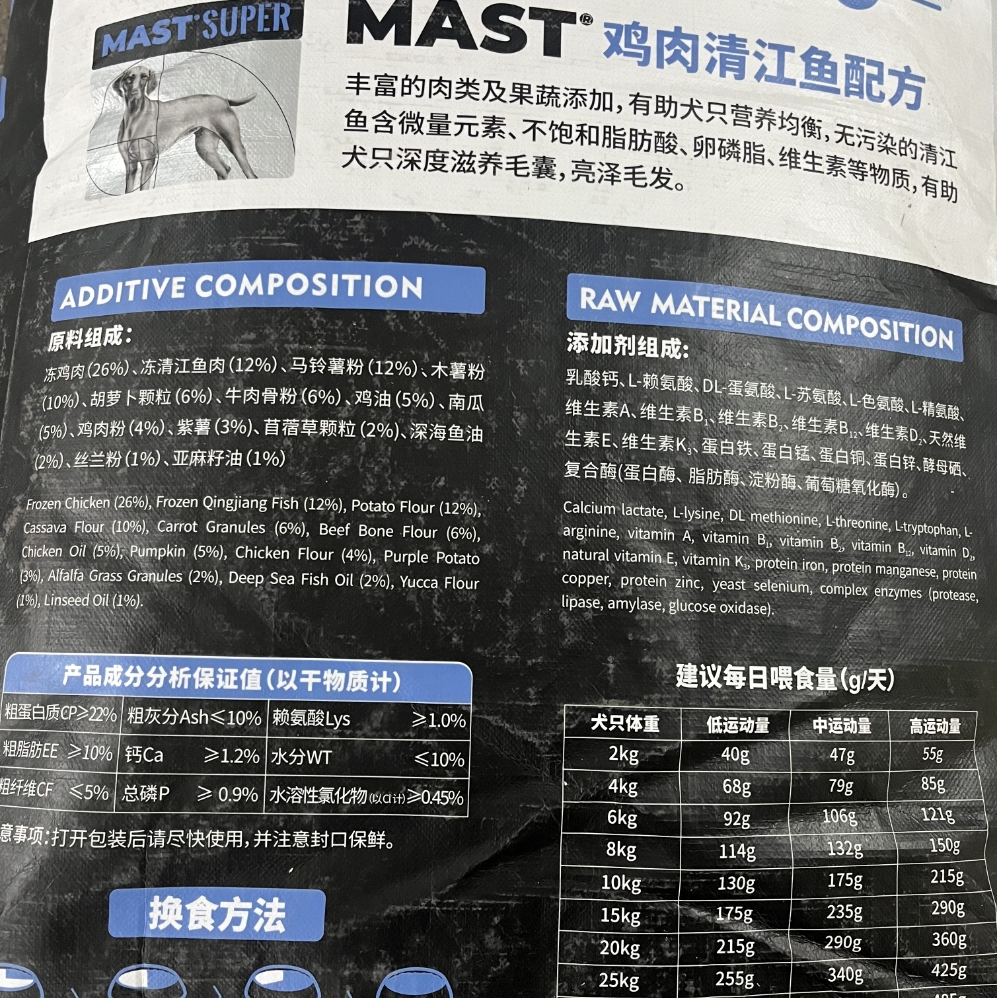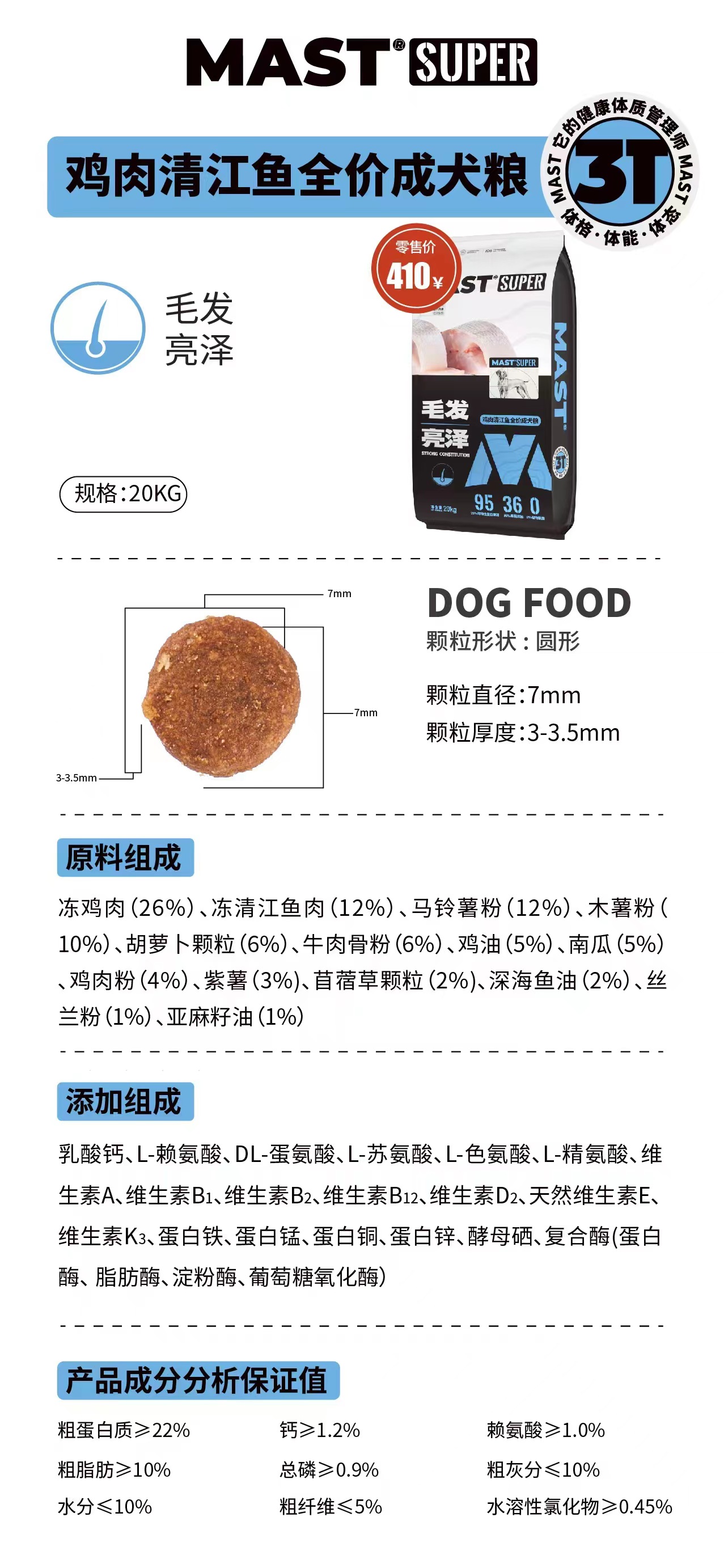 手工下单!MAST鸡肉清江鱼成犬繁育粮20KG犸思特MAST狗粮MAST亮泽毛发全价成犬粮玛斯特狗粮心粮MAST系列狗粮