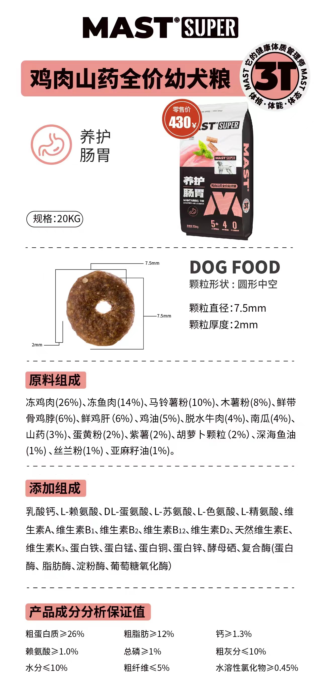 手工下单!MAST鸡肉山药幼犬繁育粮20KG心粮MAST系列狗粮玛斯特MAST鸡肉山药幼犬粮mast肠胃养护狗粮心粮狗粮