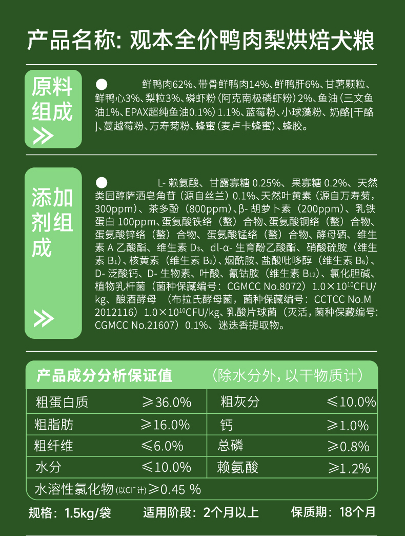 观本鸭肉梨烘焙狗粮7.5kg观本生烘焙系列全价鸭肉梨烘焙犬粮观本烘焙狗粮观本鸭肉梨烘焙狗粮观本狗粮7.5kg