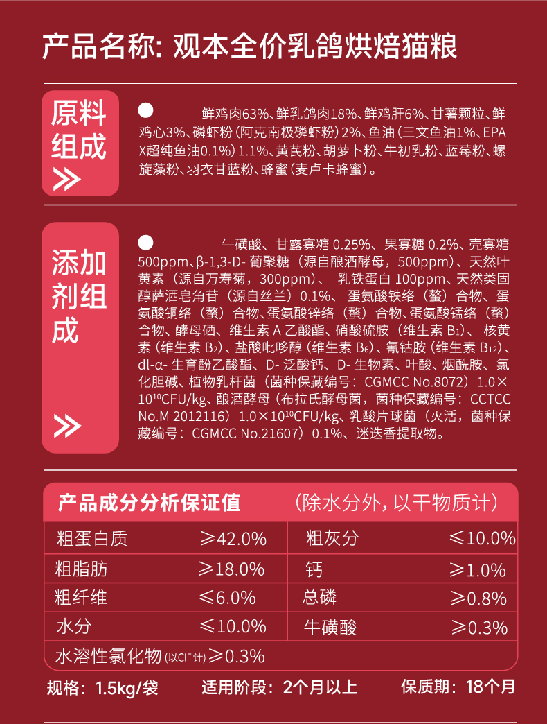 观本乳鸽烘焙猫粮1.5kg观本生烘焙系列全价乳鸽烘焙猫粮观本烘焙猫粮1.5kg观本猫粮1.5kg