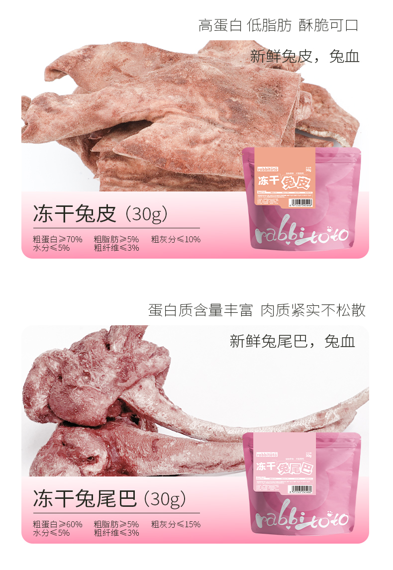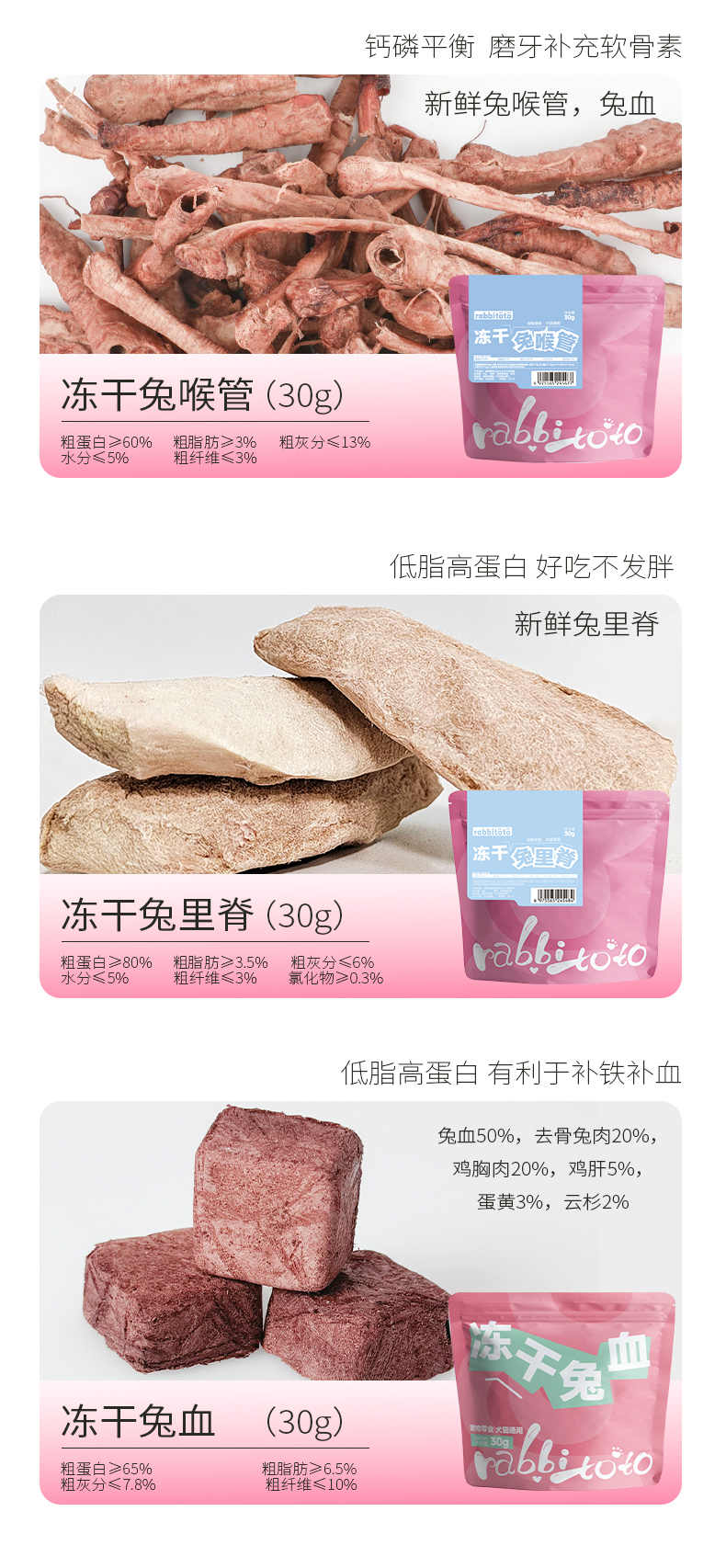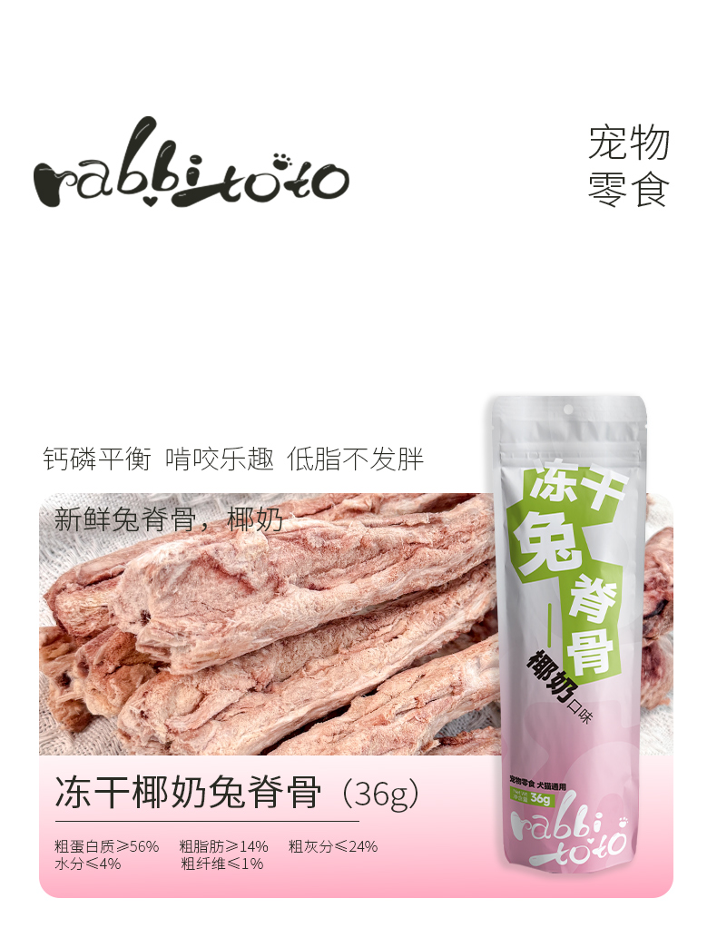 Rabbitoto宠物冻干零食Rabbitoto全兔冻干零食兔脊骨兔排磨牙狗零食训练奖励犬猫通用猫零食拉比兔零食冻干
