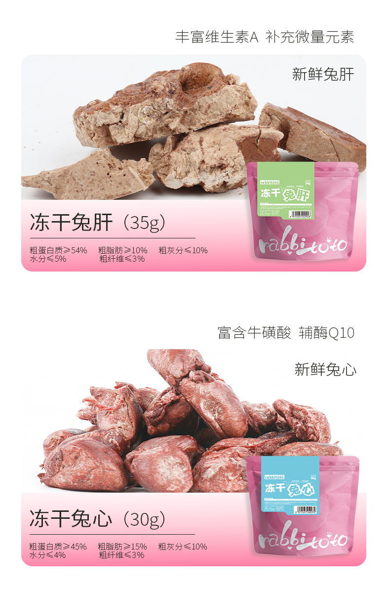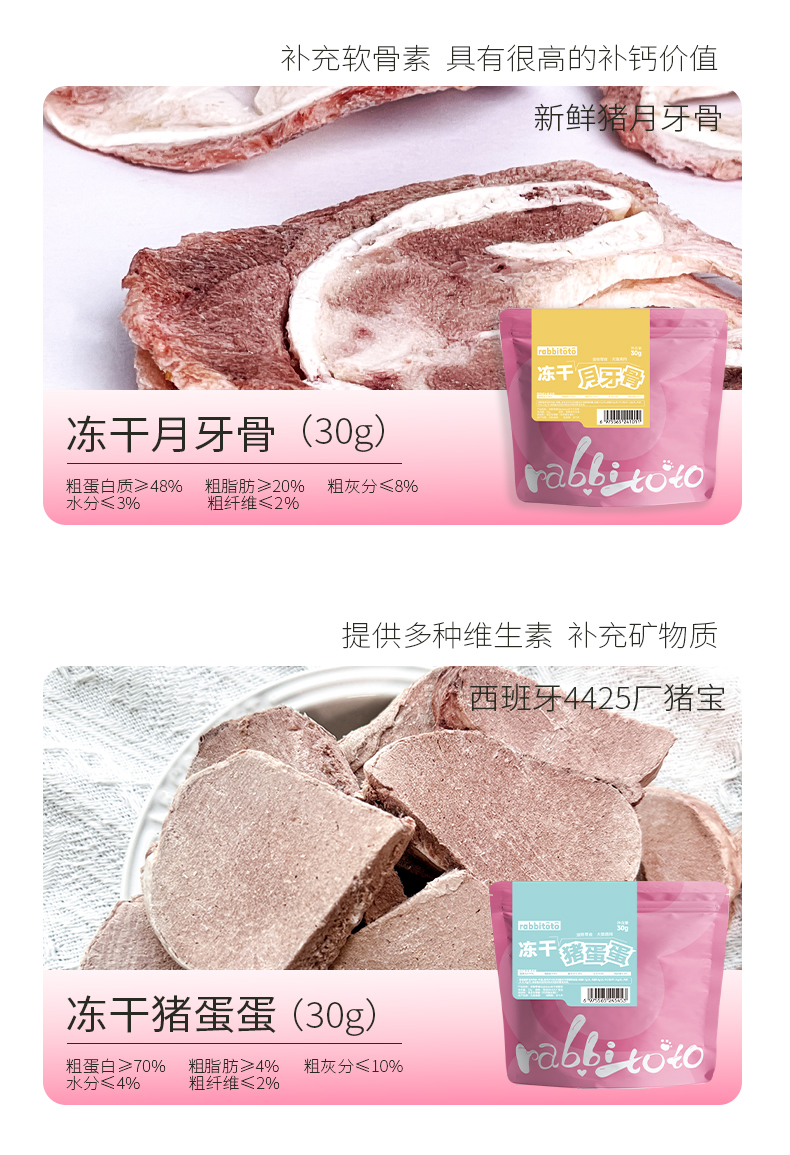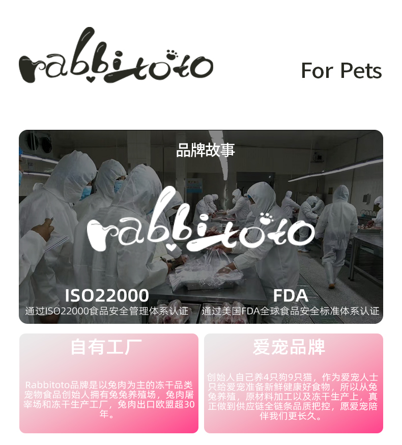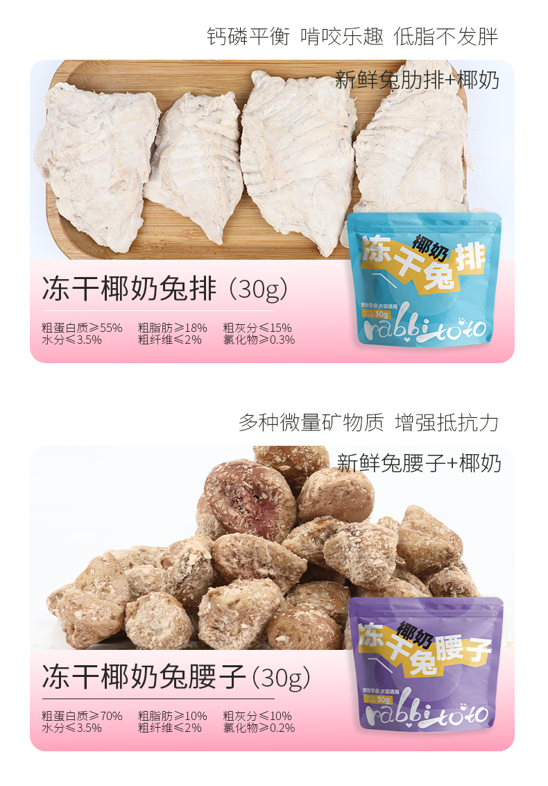 Rabbitoto宠物冻干零食Rabbitoto全兔冻干零食兔脊骨兔排磨牙狗零食训练奖励犬猫通用猫零食拉比兔零食冻干