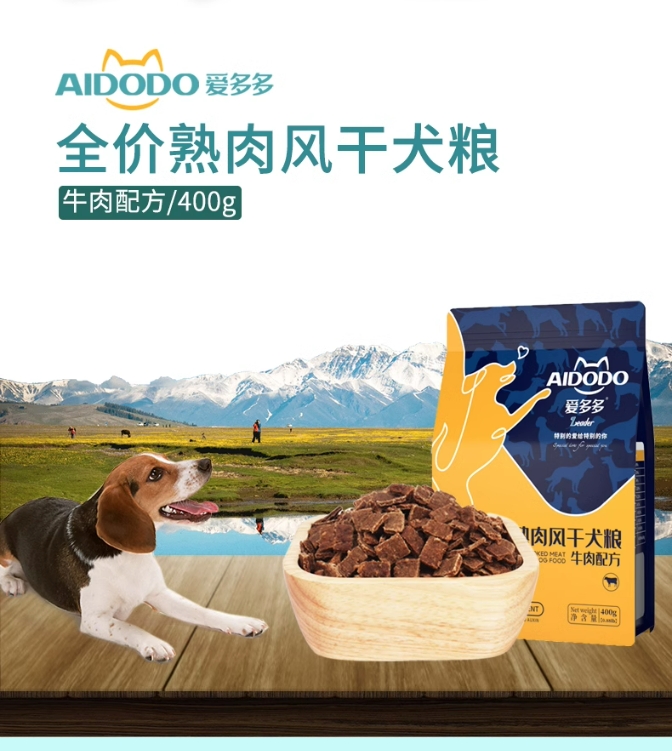 爱多多牛肉风干狗粮400g爱多多全价熟肉风干犬粮牛肉配方爱多多狗粮爱多多风干狗粮全价无谷成幼犬通用狗粮