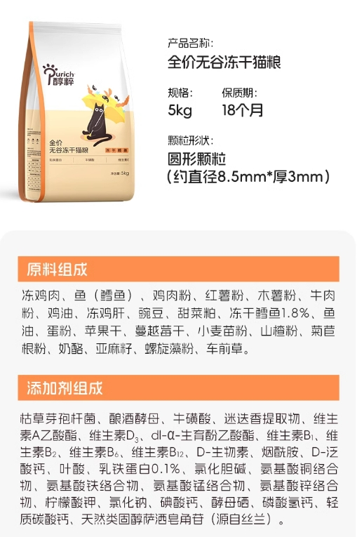 醇粹冻干鳕鱼猫粮5kg醇粹全价无谷冻干猫粮鳕鱼配方醇粹猫粮醇粹鳕鱼猫粮CFD2猫粮纯粹猫粮醇粹冻干猫粮