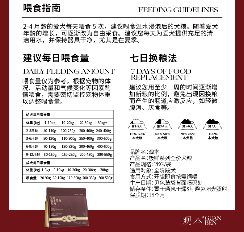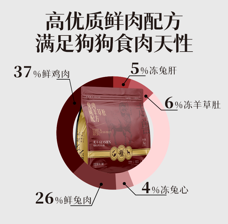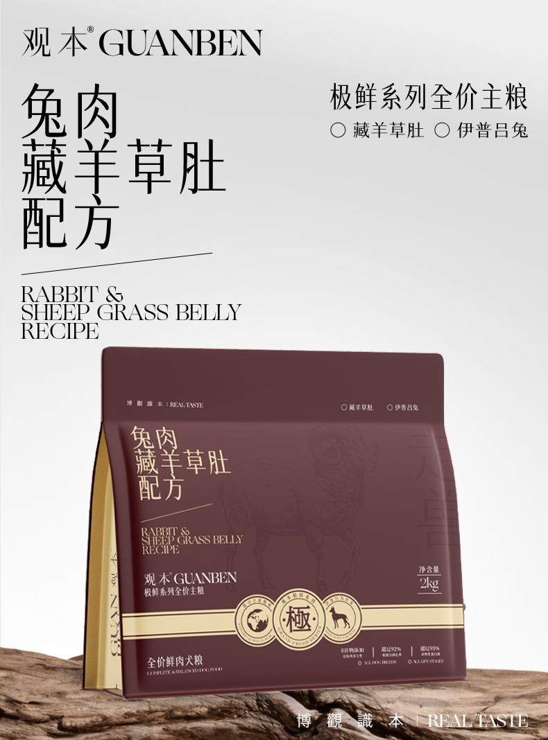 观本兔肉羊草肚狗粮2kg观本极鲜系列全价鲜肉犬粮兔肉藏羊草肚配方增肌美毛无谷低敏观本狗粮观本极鲜狗粮2kg