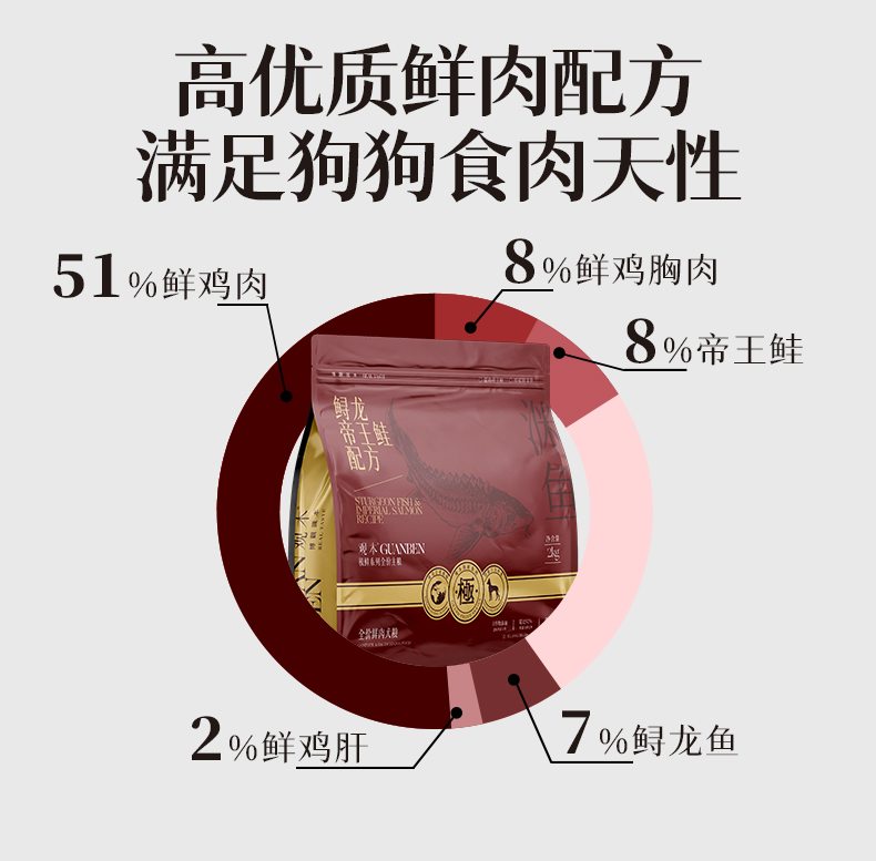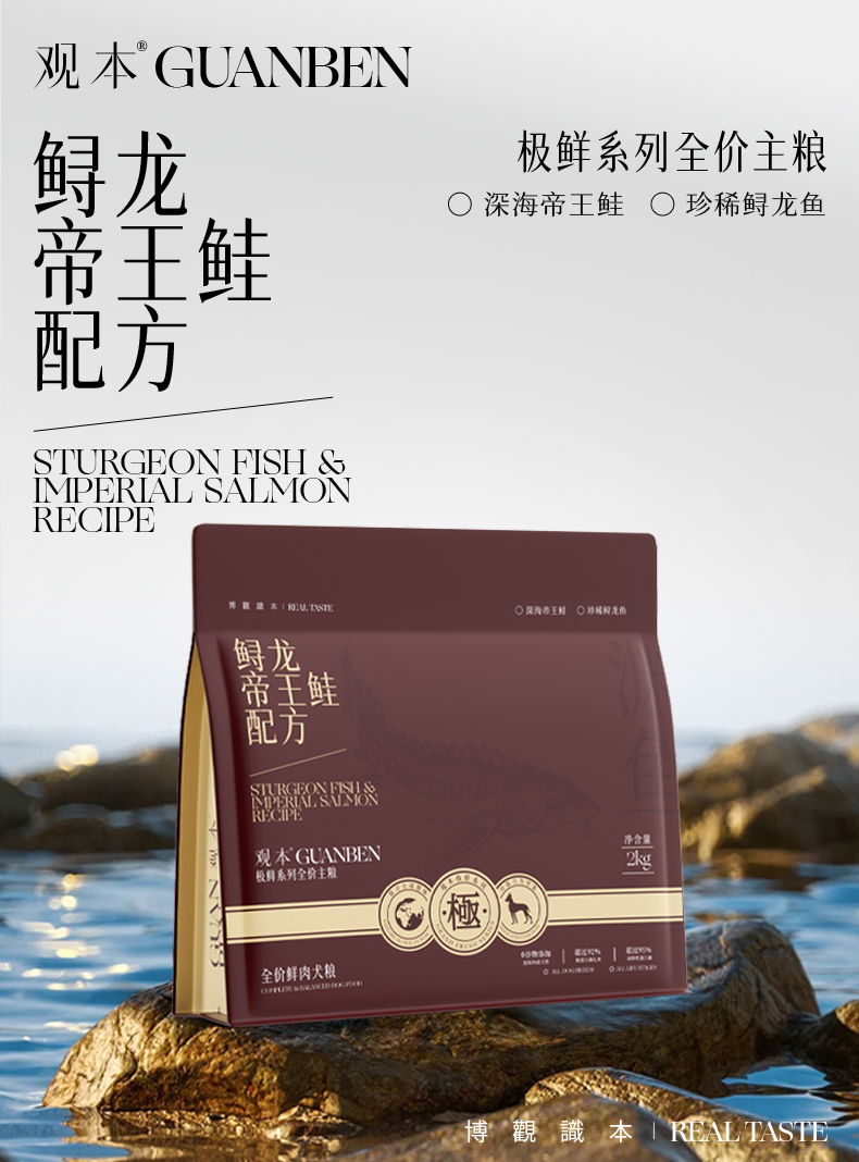 观本鲟龙鱼狗粮2kg观本极鲜系列全价鲜肉犬粮鲟龙帝王鲑配方无谷低敏美毛观本狗粮观本极鲜狗粮2kg