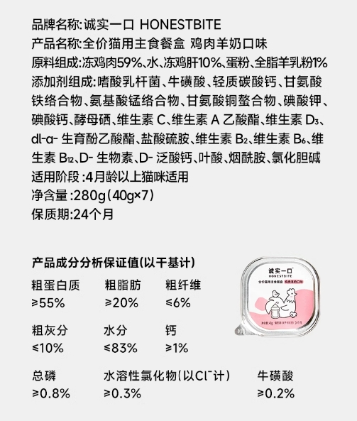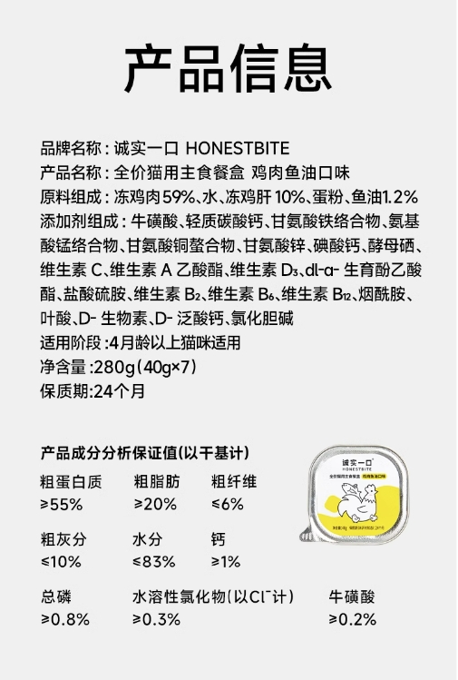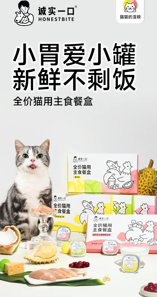 诚实一口猫用主食餐盒40g*2诚实一口餐盒诚实一口全价猫用主食餐盒鸡肉鱼油鸡肉羊奶小鸟杯猫罐头成幼猫通用