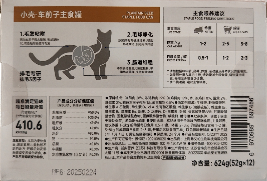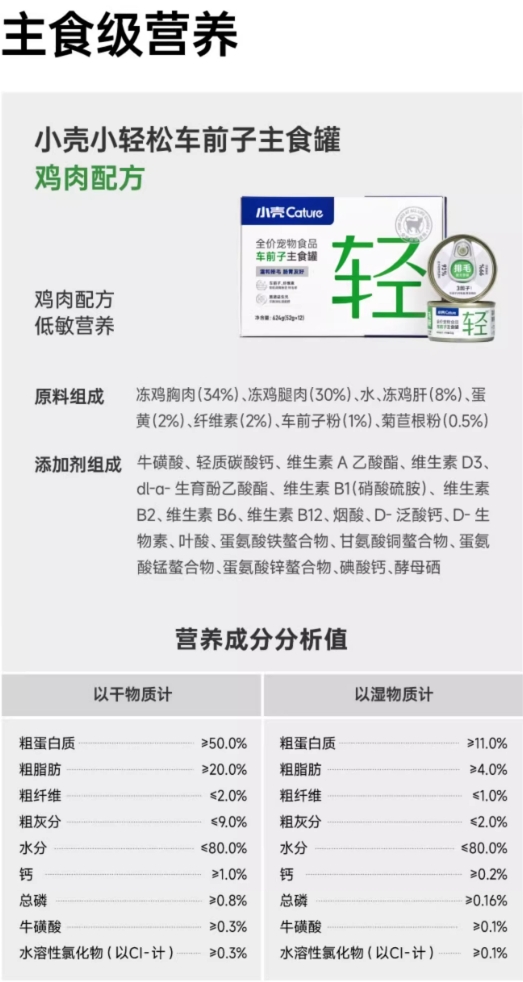 小壳排毛罐小壳车前子主食罐小壳猫罐头全价主食猫罐化毛球助排毛主食罐猫咪主食罐温和排毛
