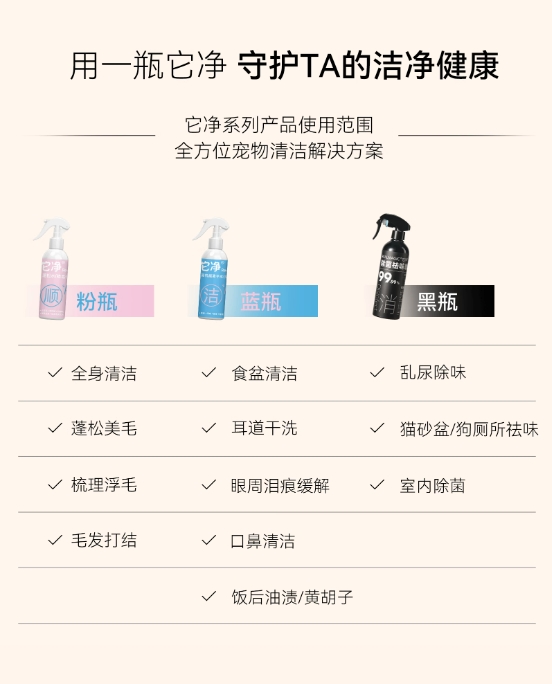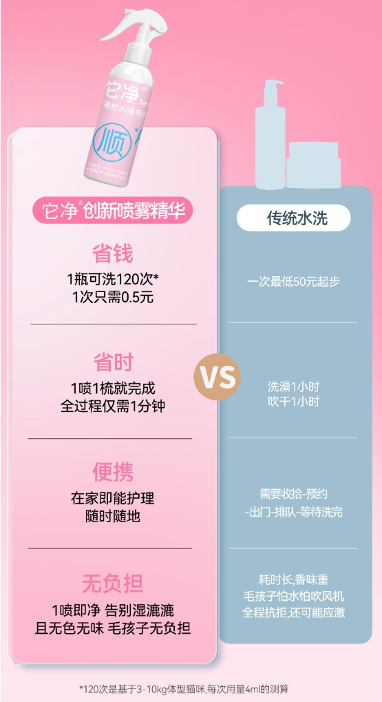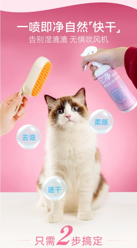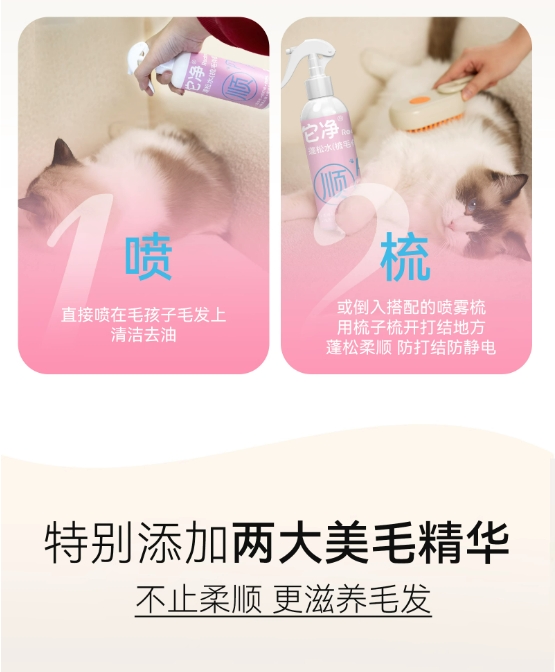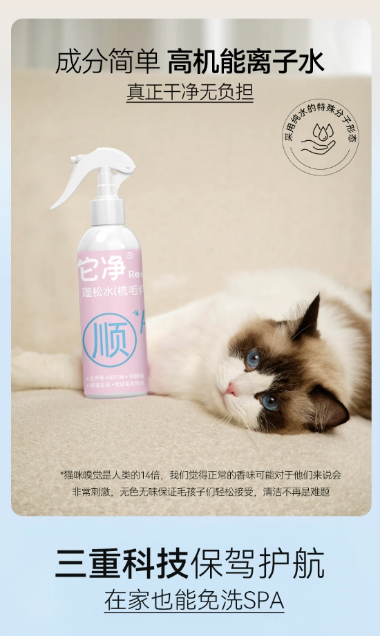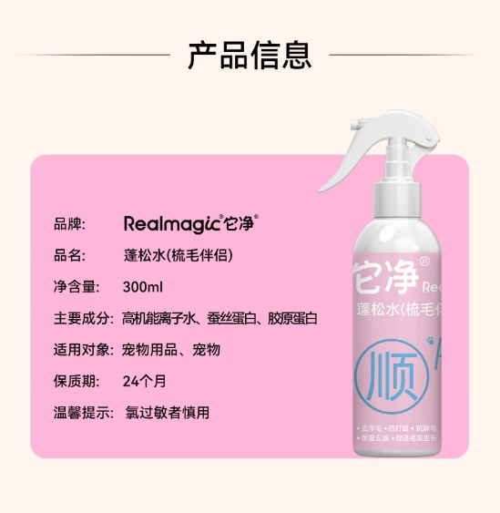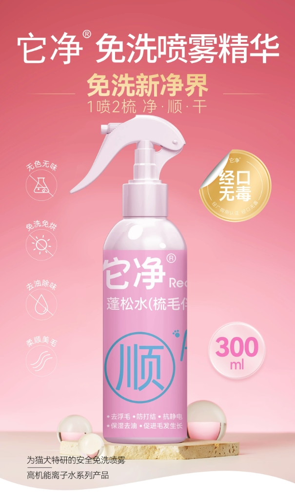 它福它净粉瓶300ml蓬松水梳毛伴侣它净蚕丝蛋白免洗喷雾精华免洗澡清洁喷雾去浮毛防打结抗静电宠物干洗开结喷雾