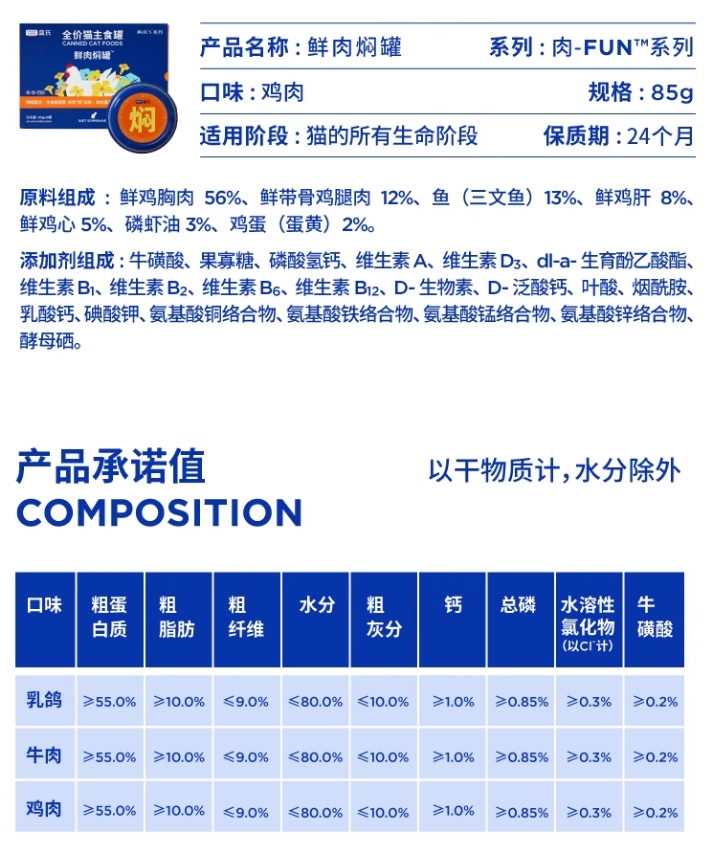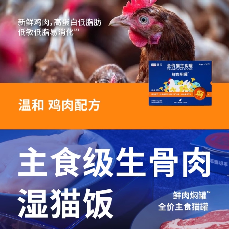 蓝氏全价猫主食罐头85G鲜肉焖罐成猫幼猫补水湿粮猫饭蓝氏猫罐蓝氏鲜肉闷罐蓝氏主食猫罐