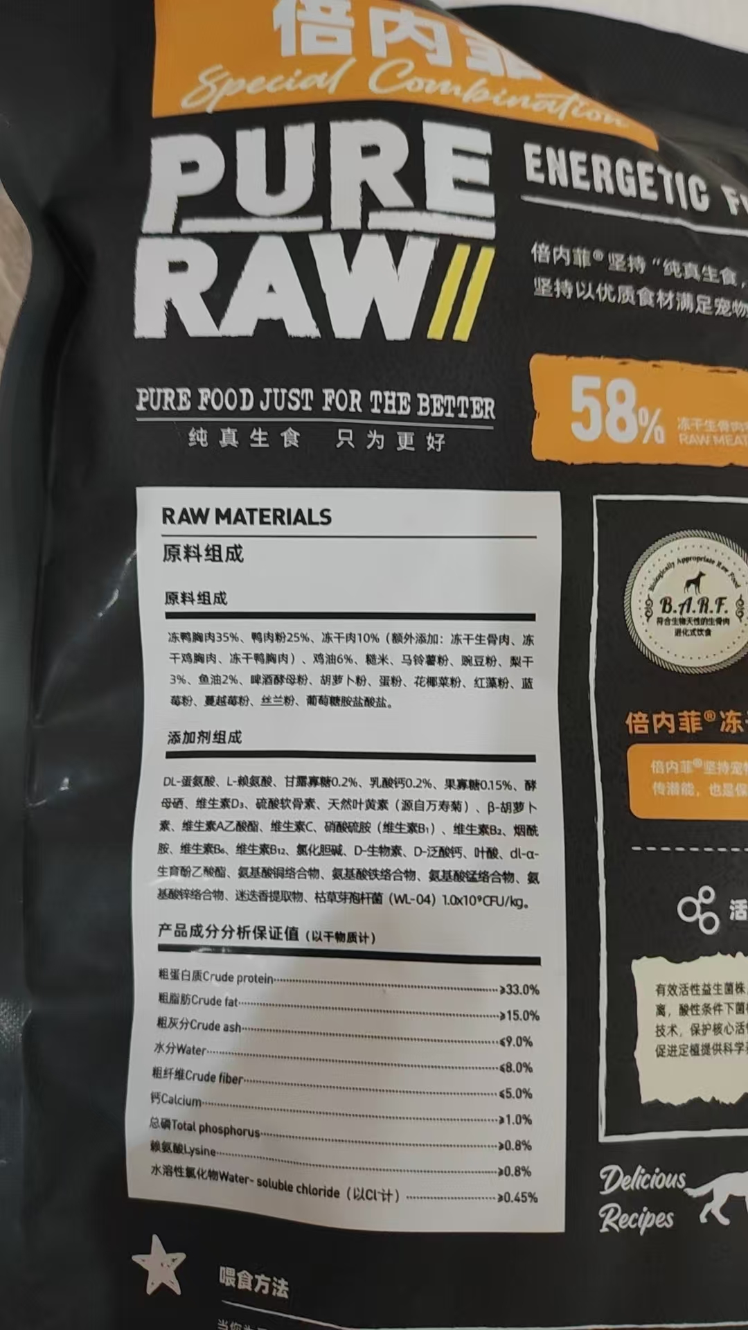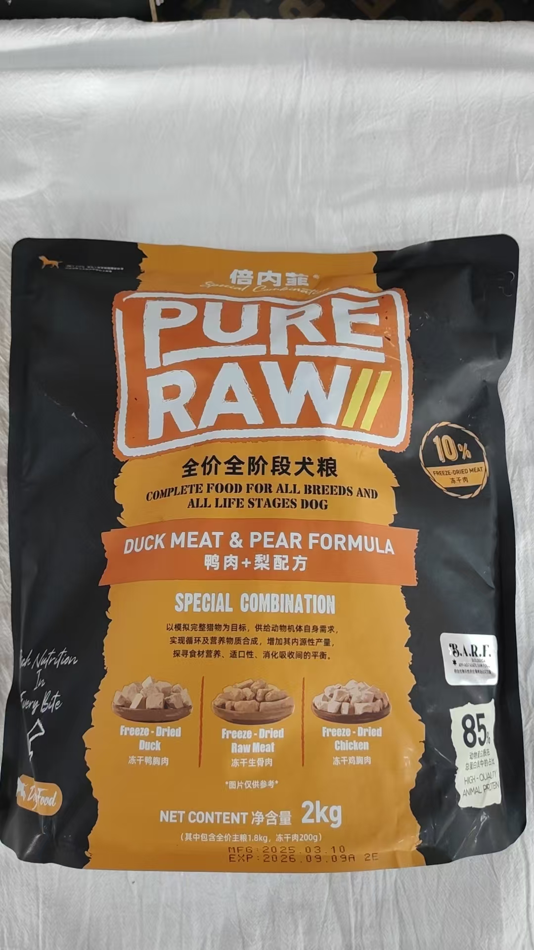 倍内菲黑金系列鸭肉梨狗粮2kg全价全阶段犬粮低升糖10%冻干生骨肉添加倍内非黑金狗粮