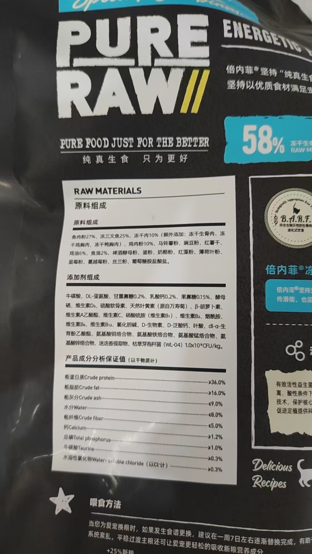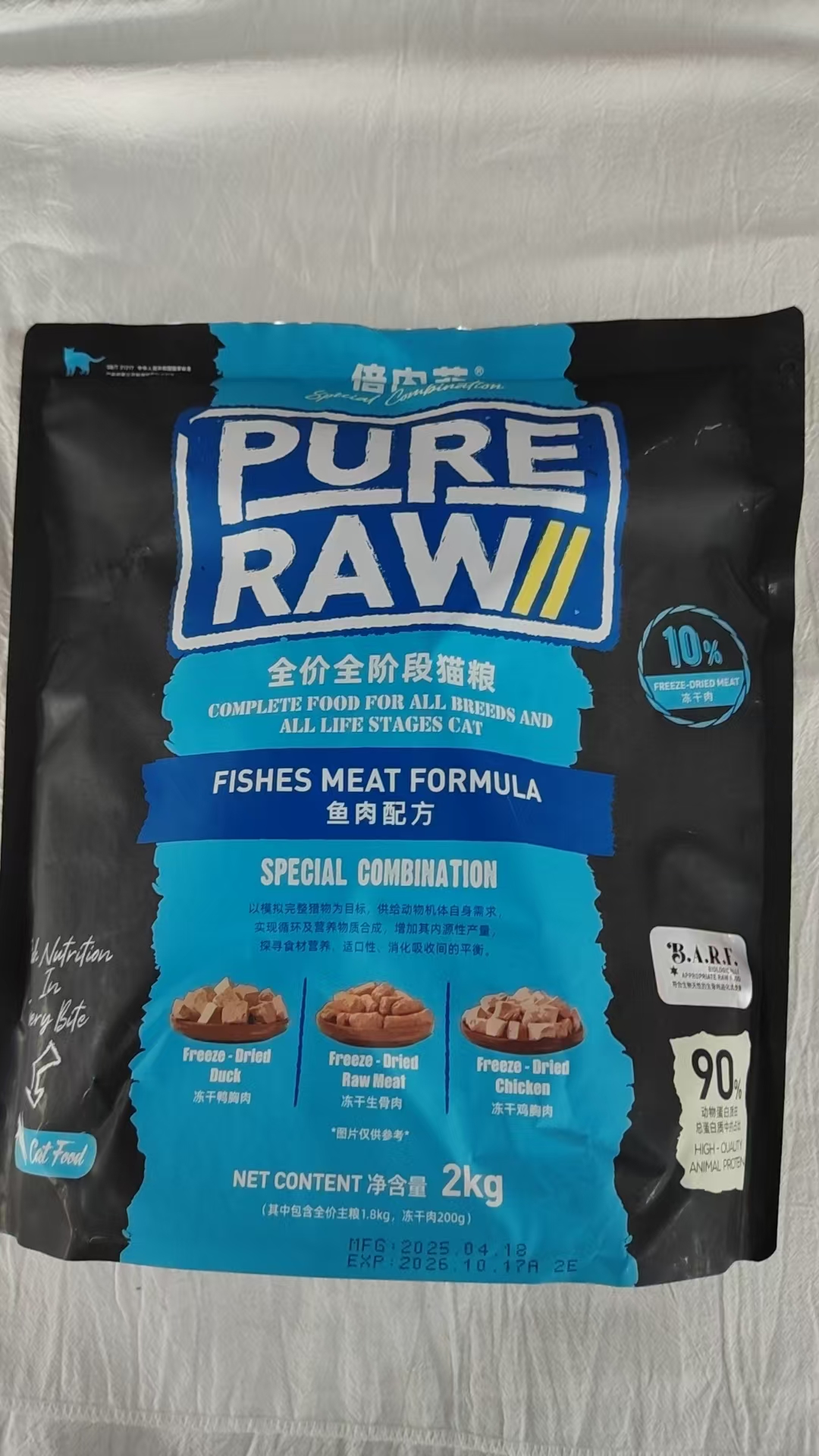 倍内菲黑金系列鱼肉猫粮2kg全价全阶段猫粮低升糖10%冻干生骨肉添加益生菌倍内非黑金猫粮2kg海洋鱼