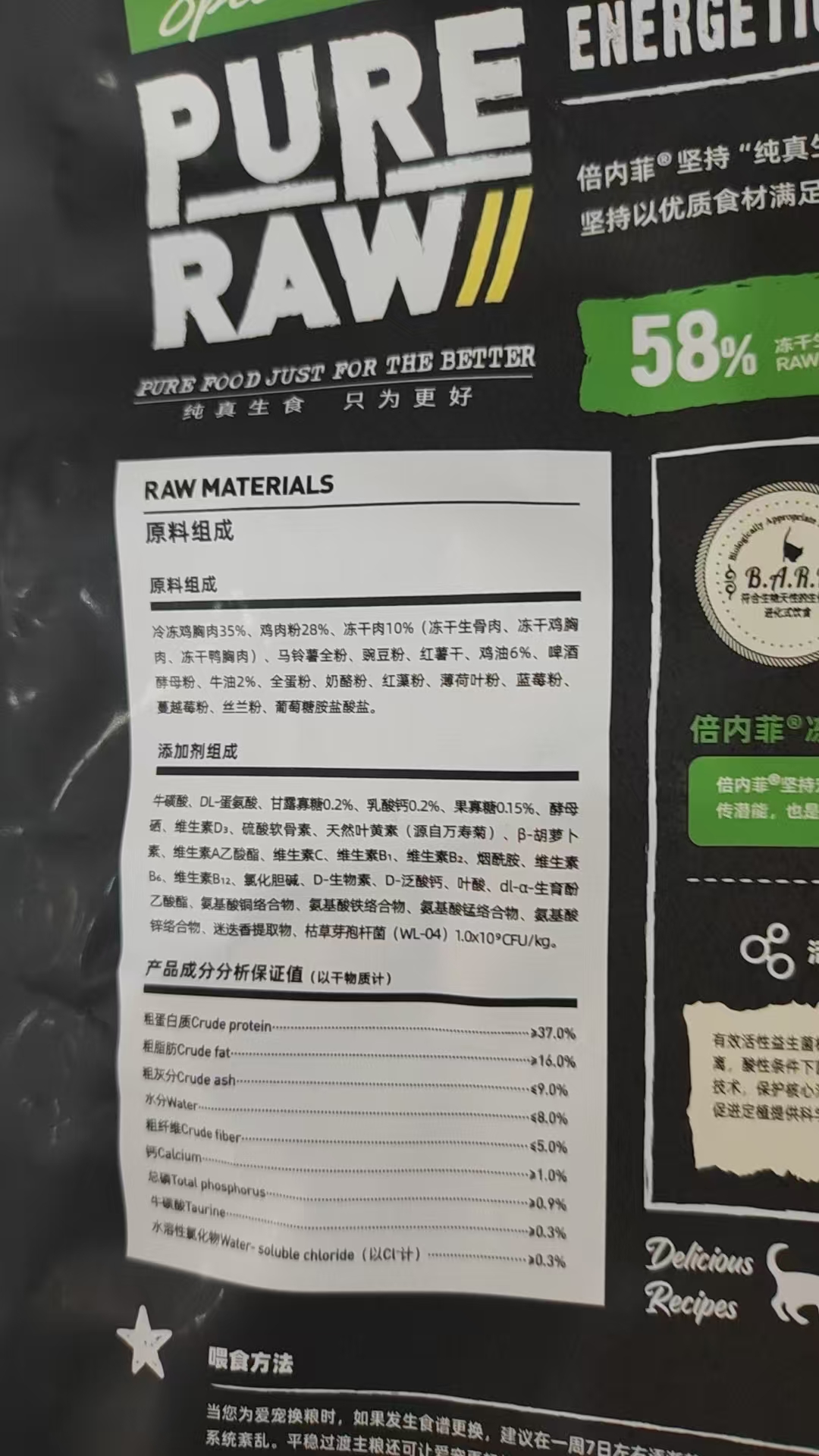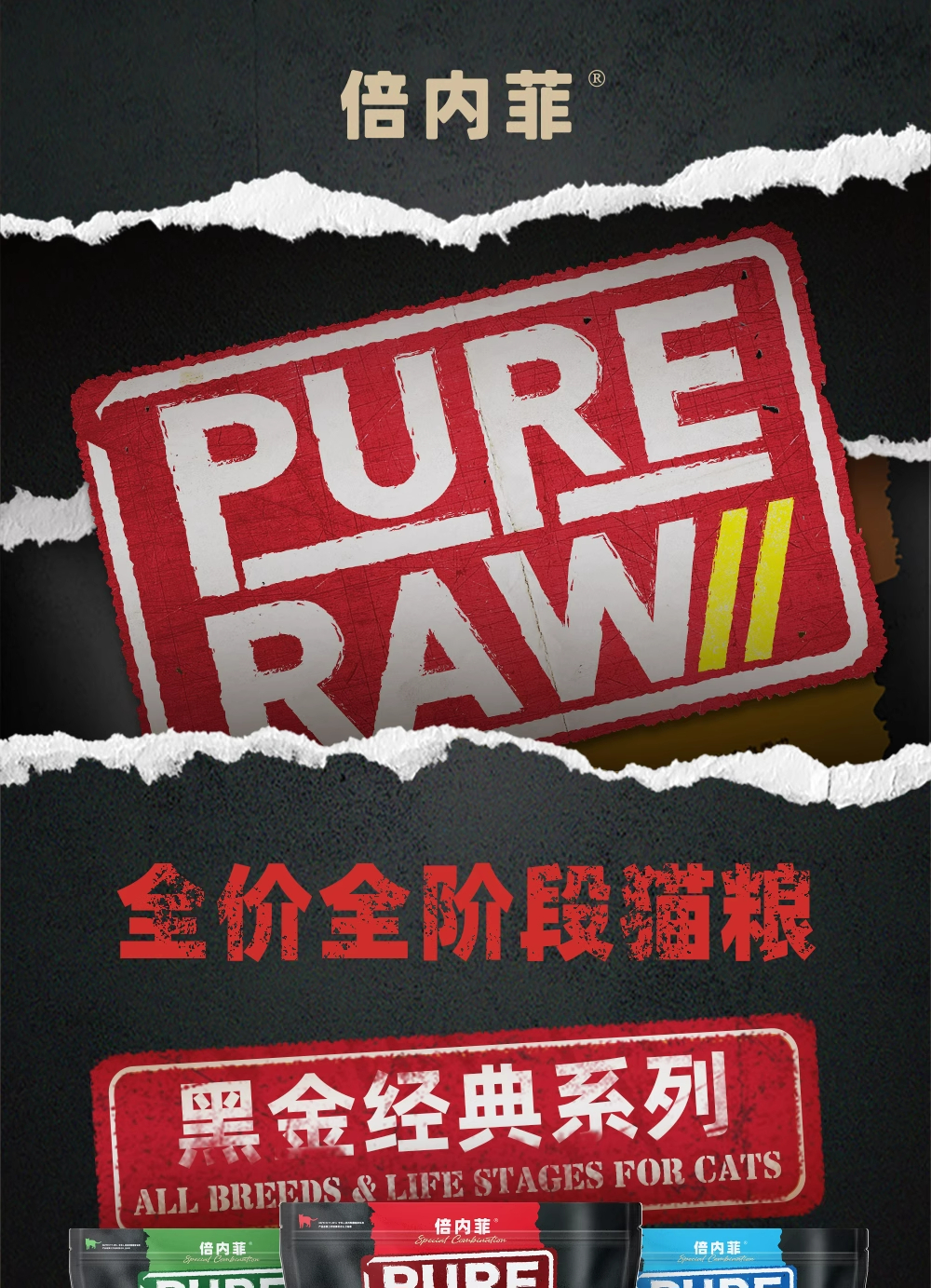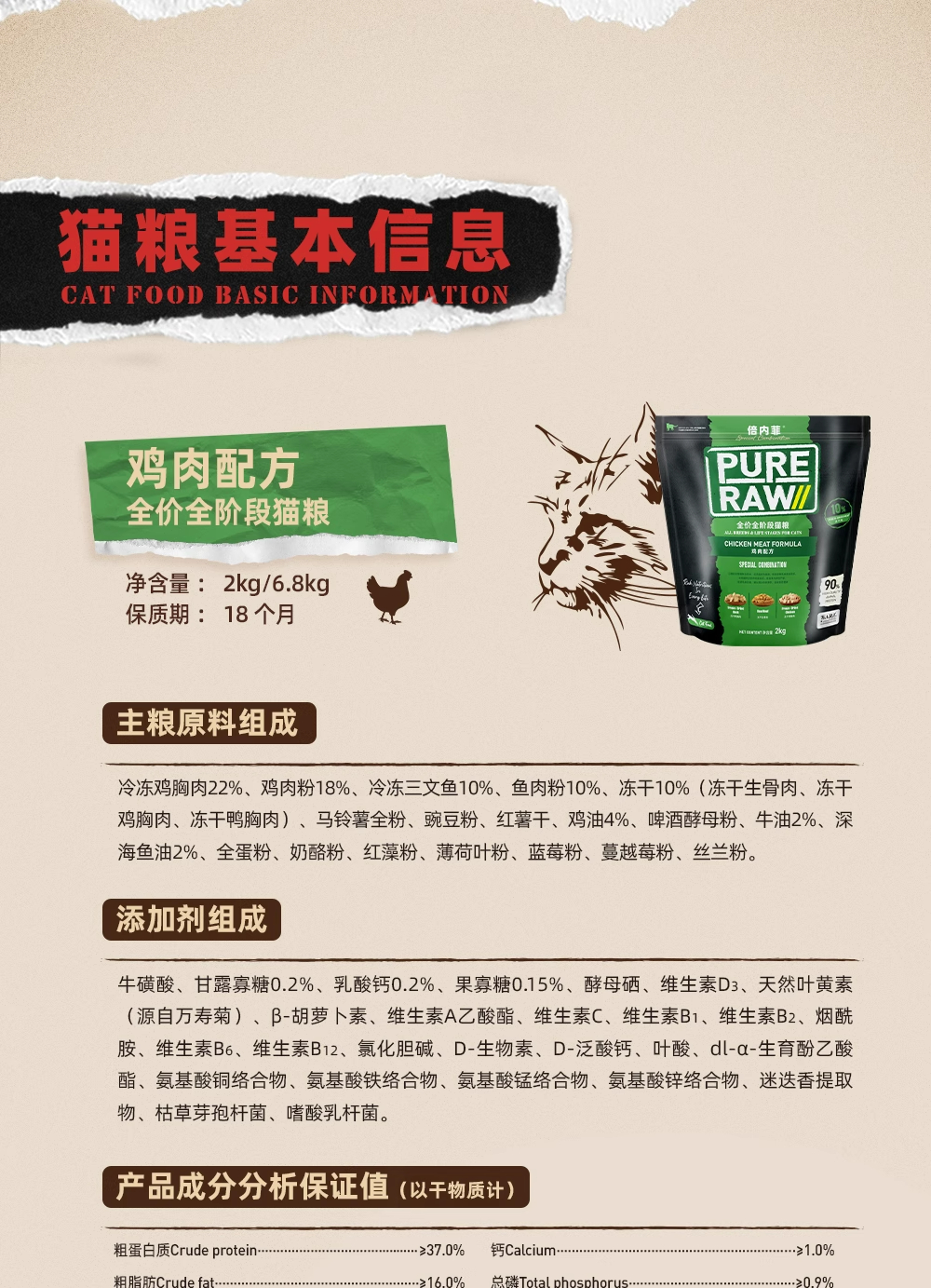 倍内菲黑金系列鸡肉猫粮2kg全价全阶段猫粮低升糖10%冻干生骨肉添加益生菌倍内非黑金猫粮2kg禽肉