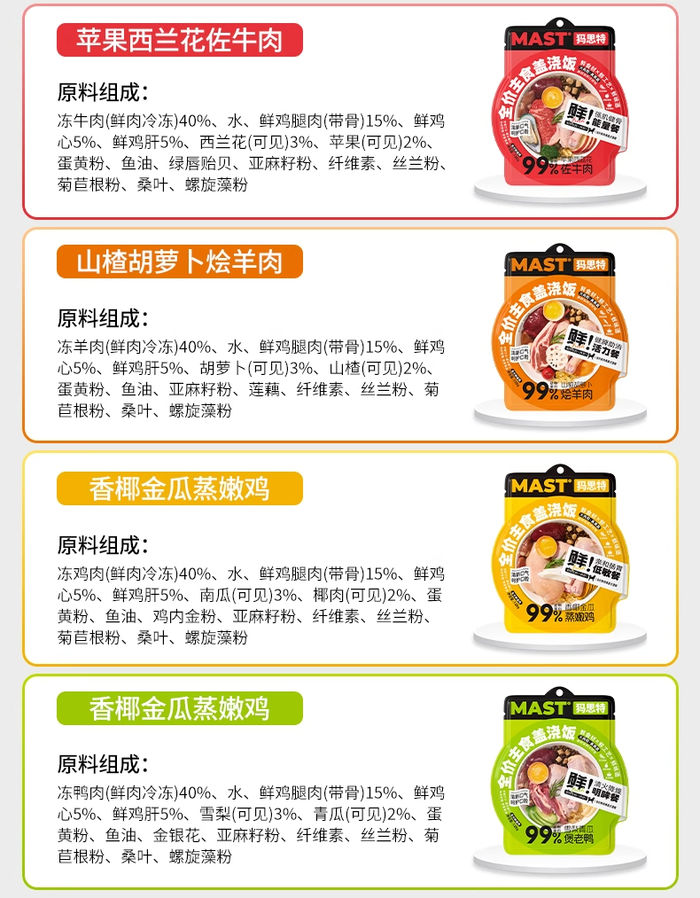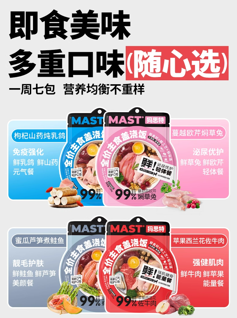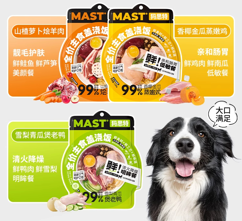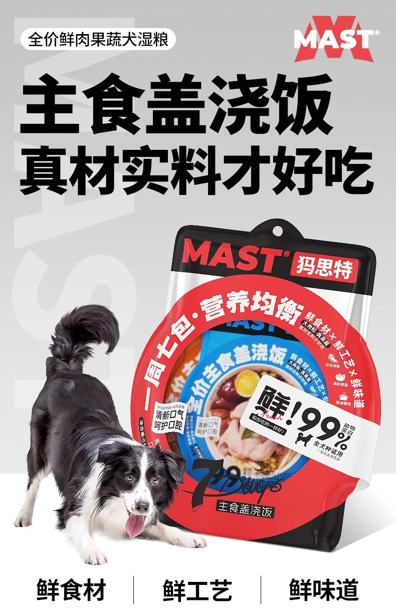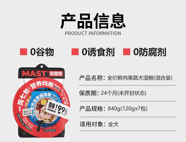 MAST犸思特全价犬用主食盖浇饭一周七天狗狗湿粮狗饭鲜肉宠物营养补水全犬通用mast犬用主食餐包120g大肉粒真果蔬