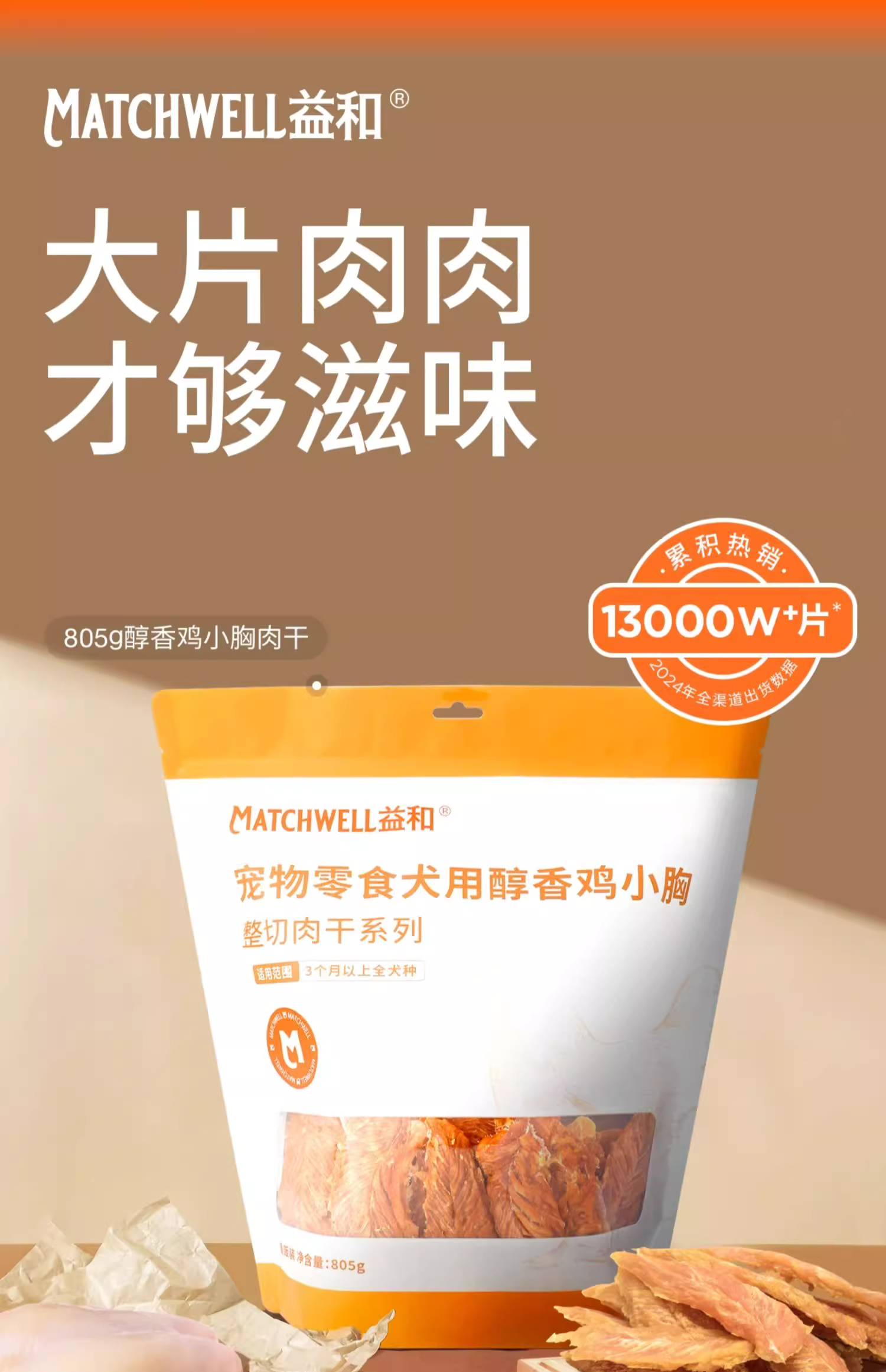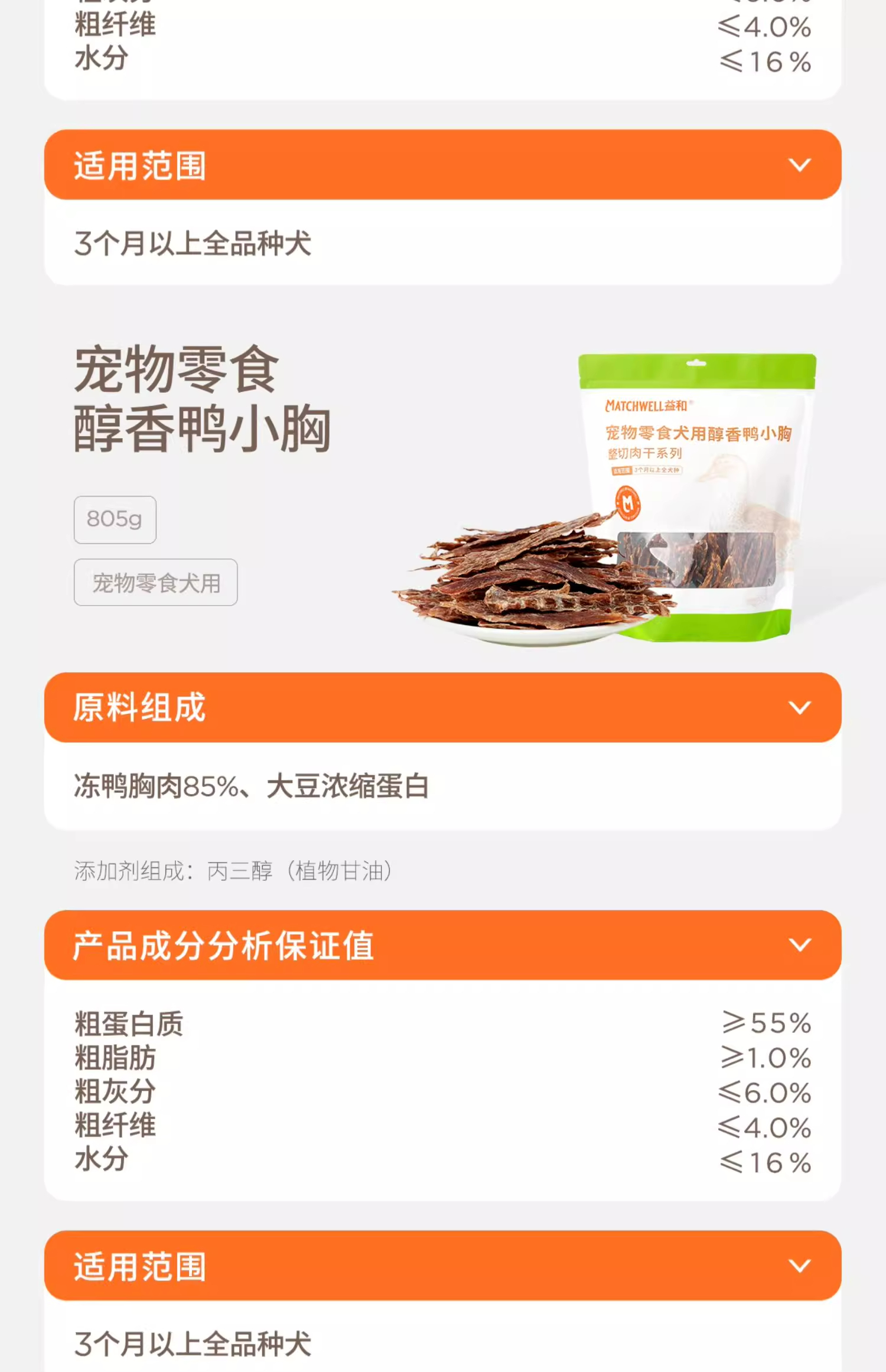 益和犬用醇香鸭小胸805g醇香鸡小胸805g狗狗零食宠物鸡肉条大小型犬磨牙棒幼犬训练奖励泰迪整切肉干系列宠物零食鸡鸭肉干