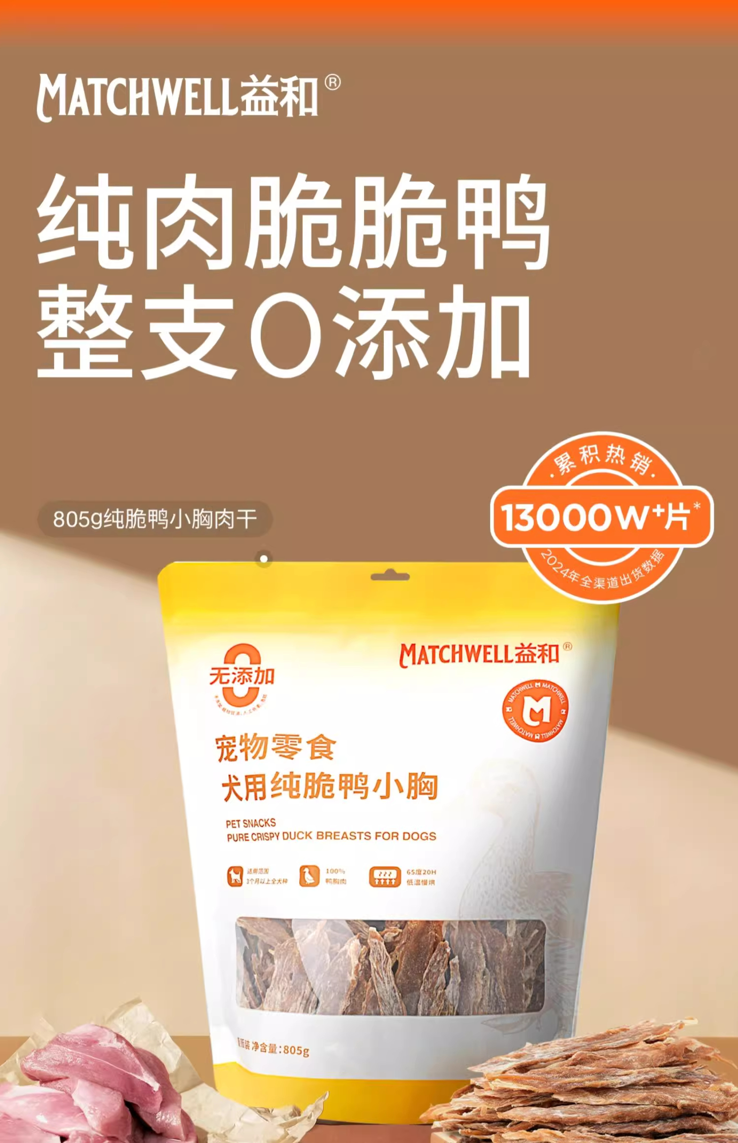 益和纯脆鸭肉干805g狗狗零食宠物0添加原切鸭肉干805g磨牙棒中小型犬纯肉干训练奖励比熊益和鸭肉干