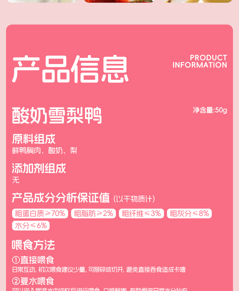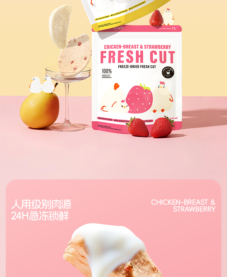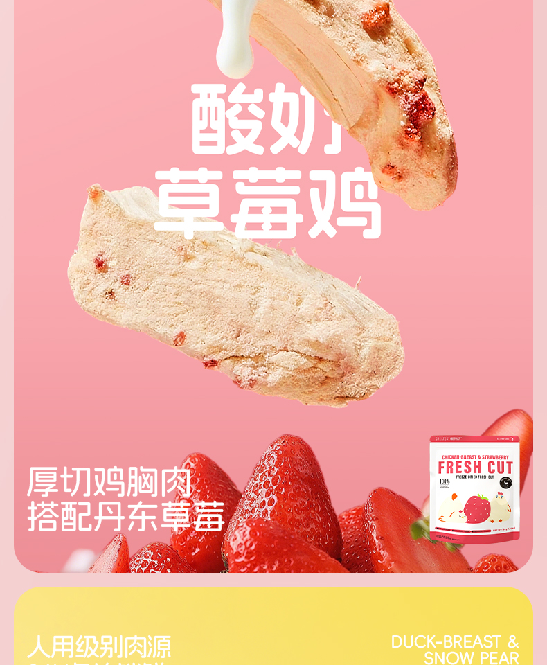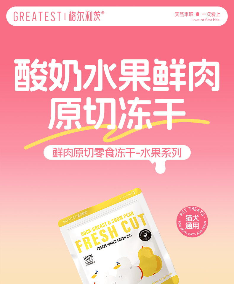 格尔利茨酸奶原切冻干50G草莓鸡/雪梨鸭格尔利茨冻干犬猫通用营养增肥发腮拌饭奖励格尔利茨零食冻干