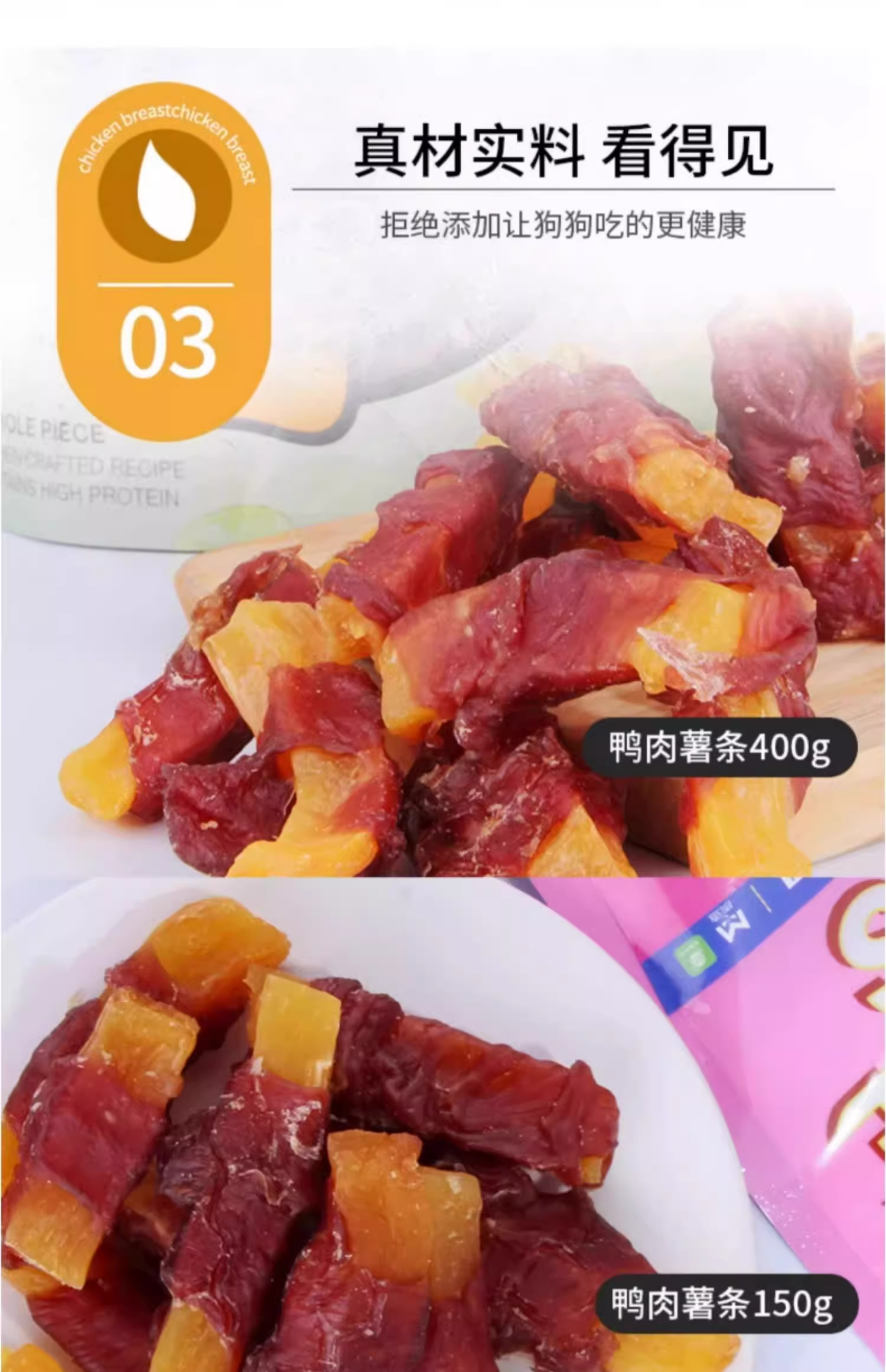 益和零食鸭肉缠薯条150g宠物狗狗零食促进消化鸭肉肉干营养肉干益和鸭肉薯条磨牙洁齿训练奖励