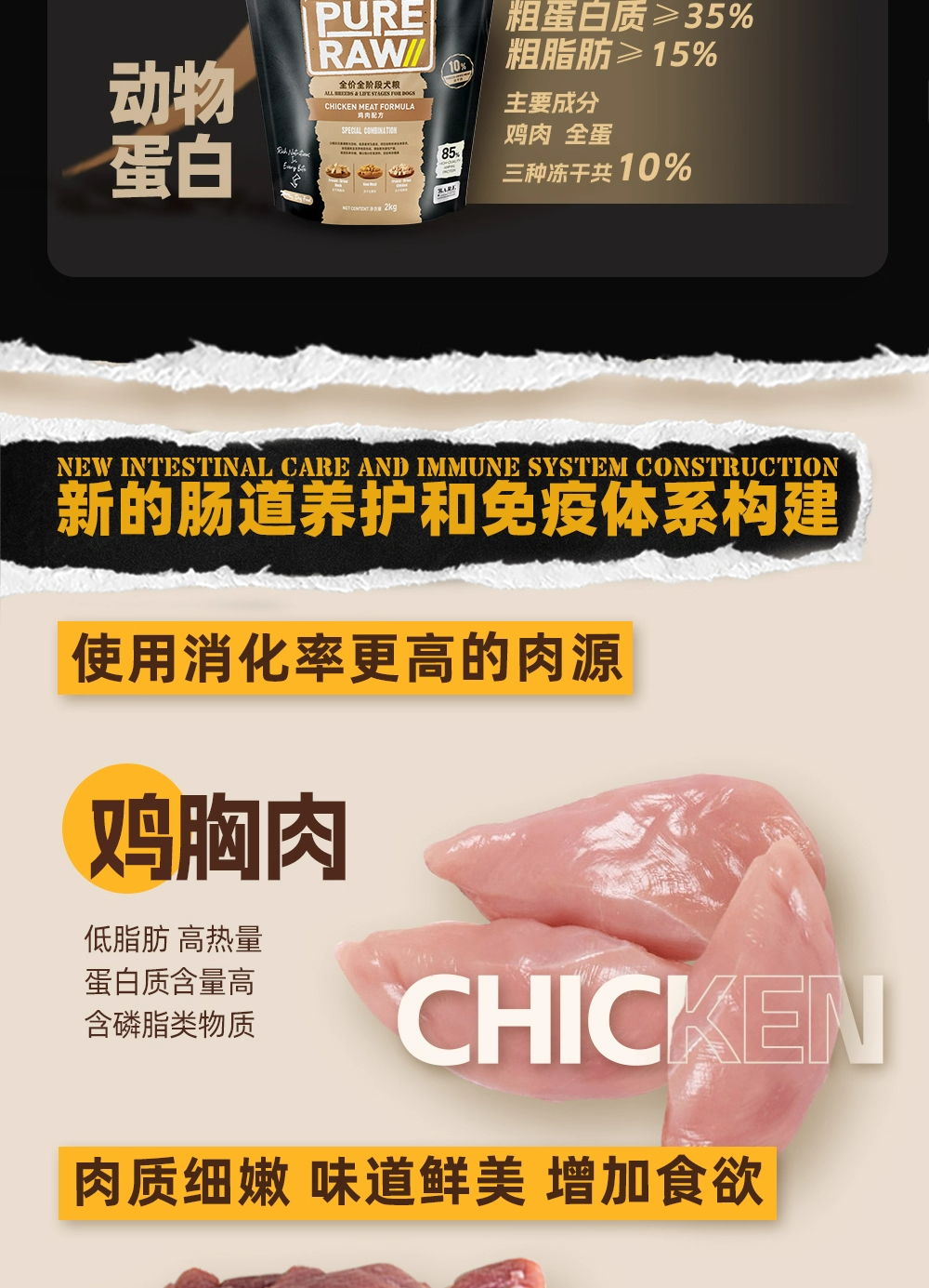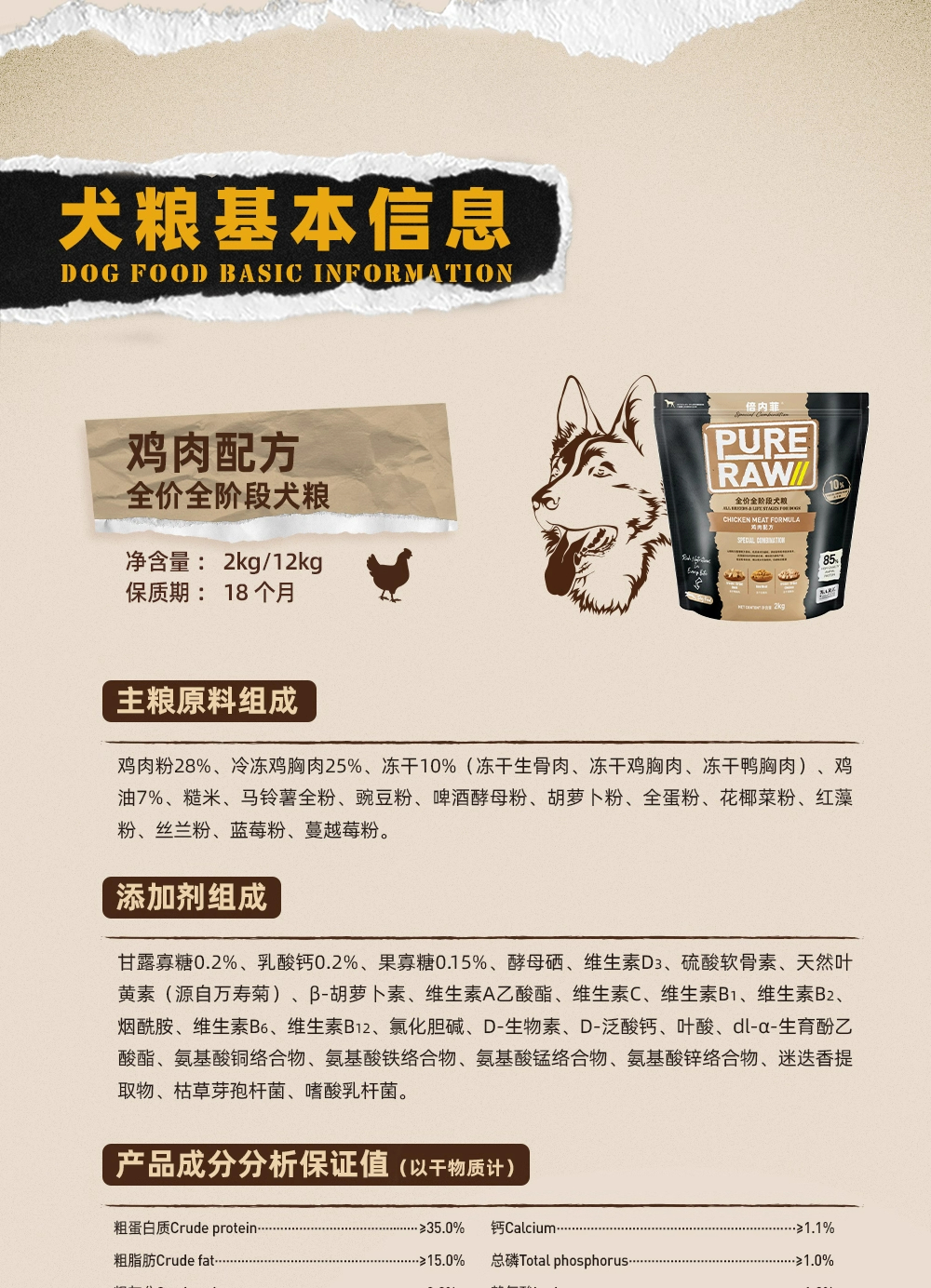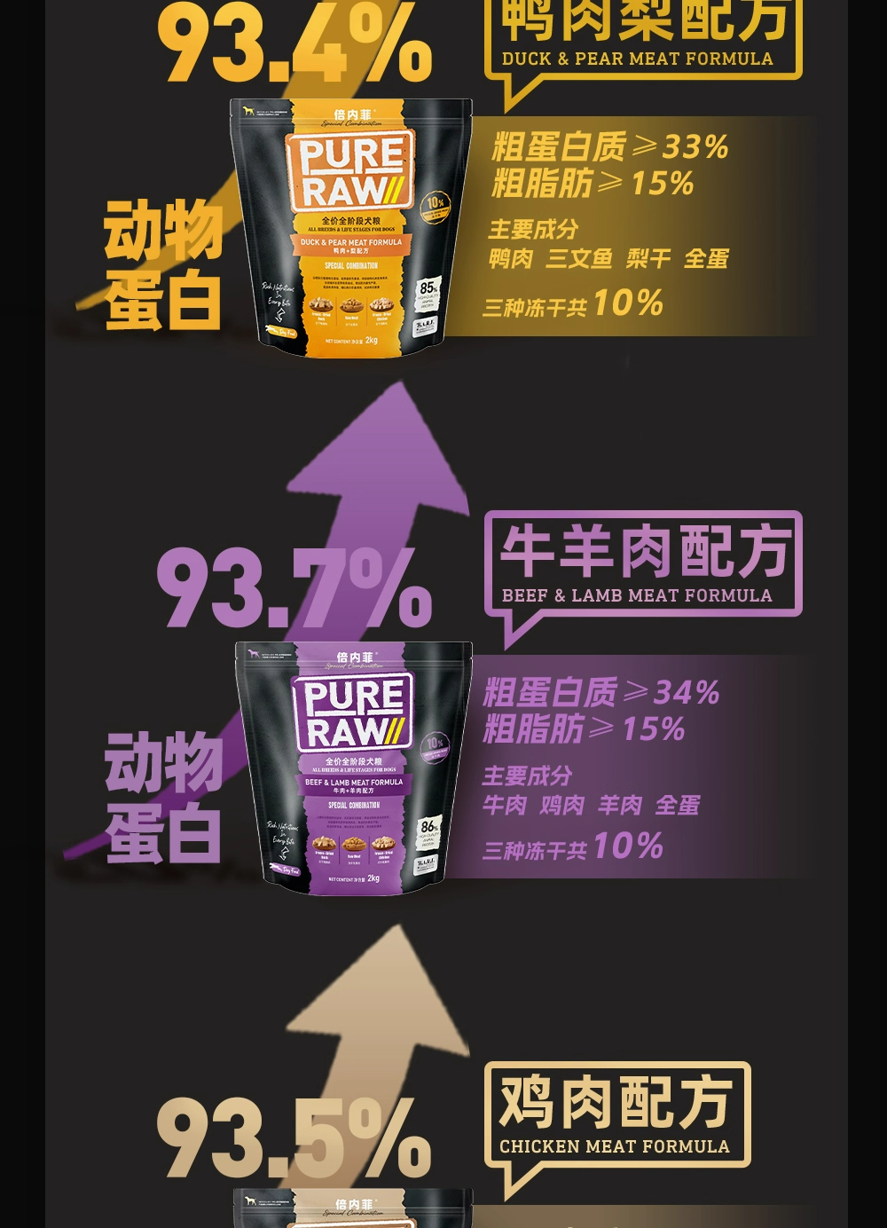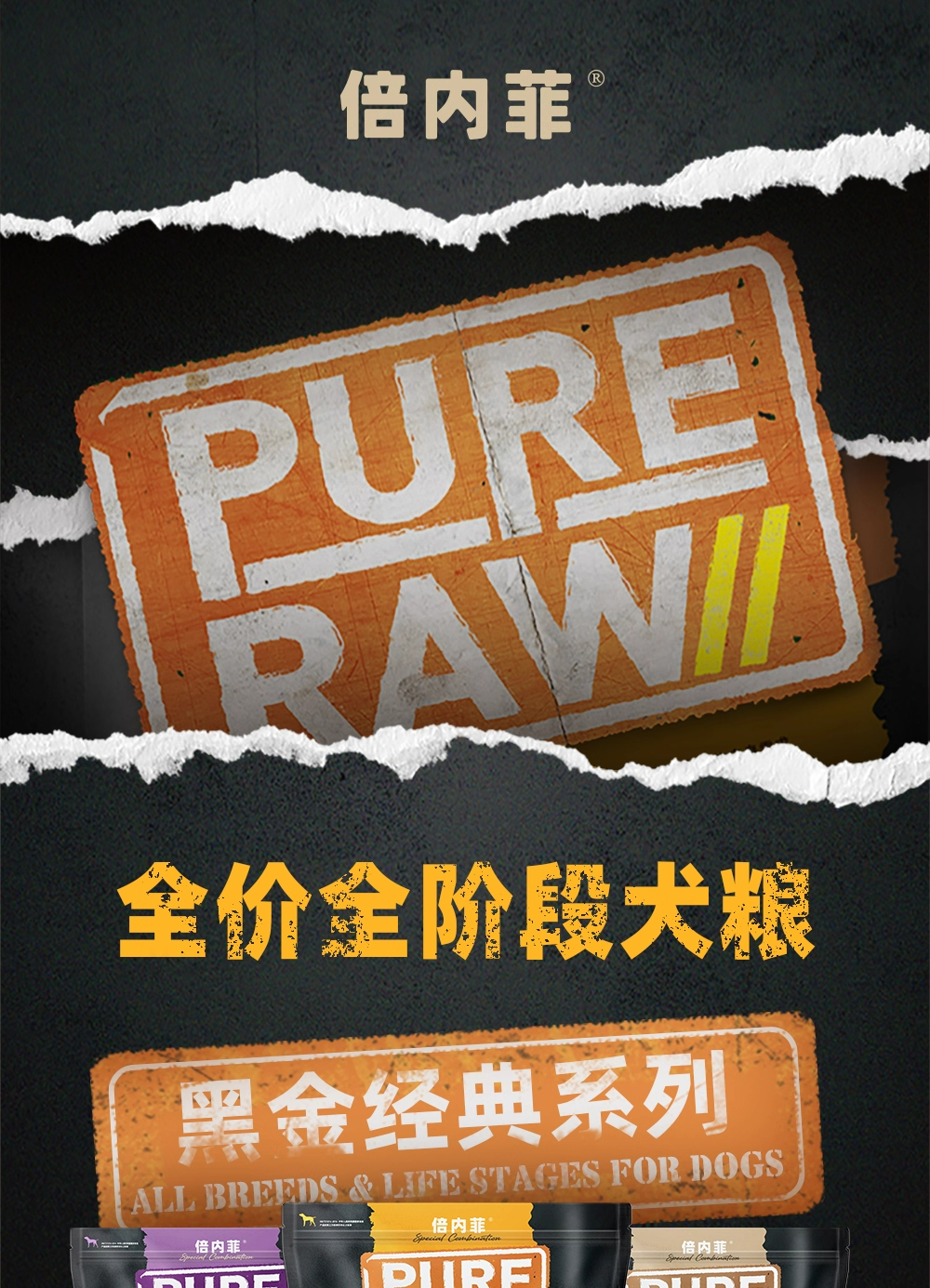 倍内菲黑金系列鸡肉狗粮2kg全价全阶段犬粮低升糖10%冻干生骨肉添加倍内非黑金狗粮