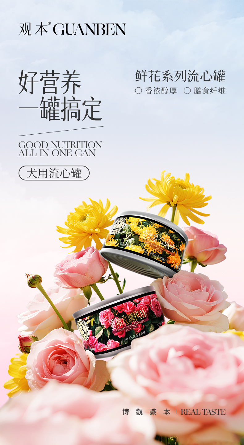 观本犬用鲜花罐GUANBEN全价生骨肉主食罐85g犬用流心罐全价全阶段通用狗罐头狗湿粮补水观本慕斯狗罐观本流心狗罐