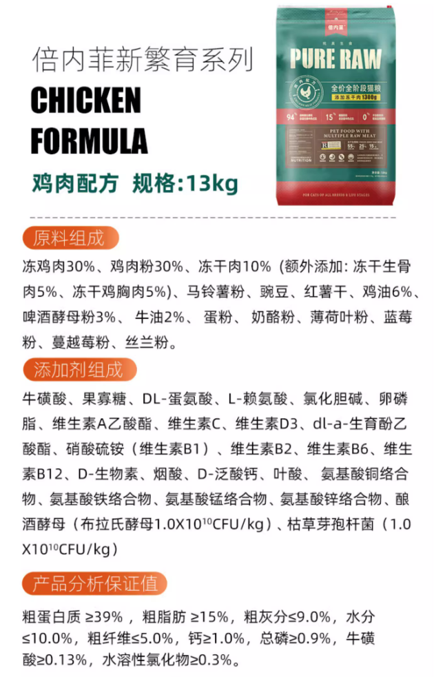 倍内菲金标新繁育鸡肉猫粮13kg倍内菲猫粮倍内菲金标猫粮倍内菲新繁育猫粮倍内菲生骨肉冻干猫粮无谷低敏全价全期倍内非猫粮