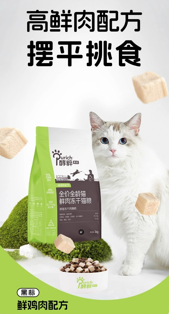 临期特价!醇粹黑标鲜肉猫粮6KG(3kg*2)醇粹黑标鲜肉冻干猫粮鲜鸡肉配方醇粹猫粮醇粹冻干猫粮醇粹黑标猫粮