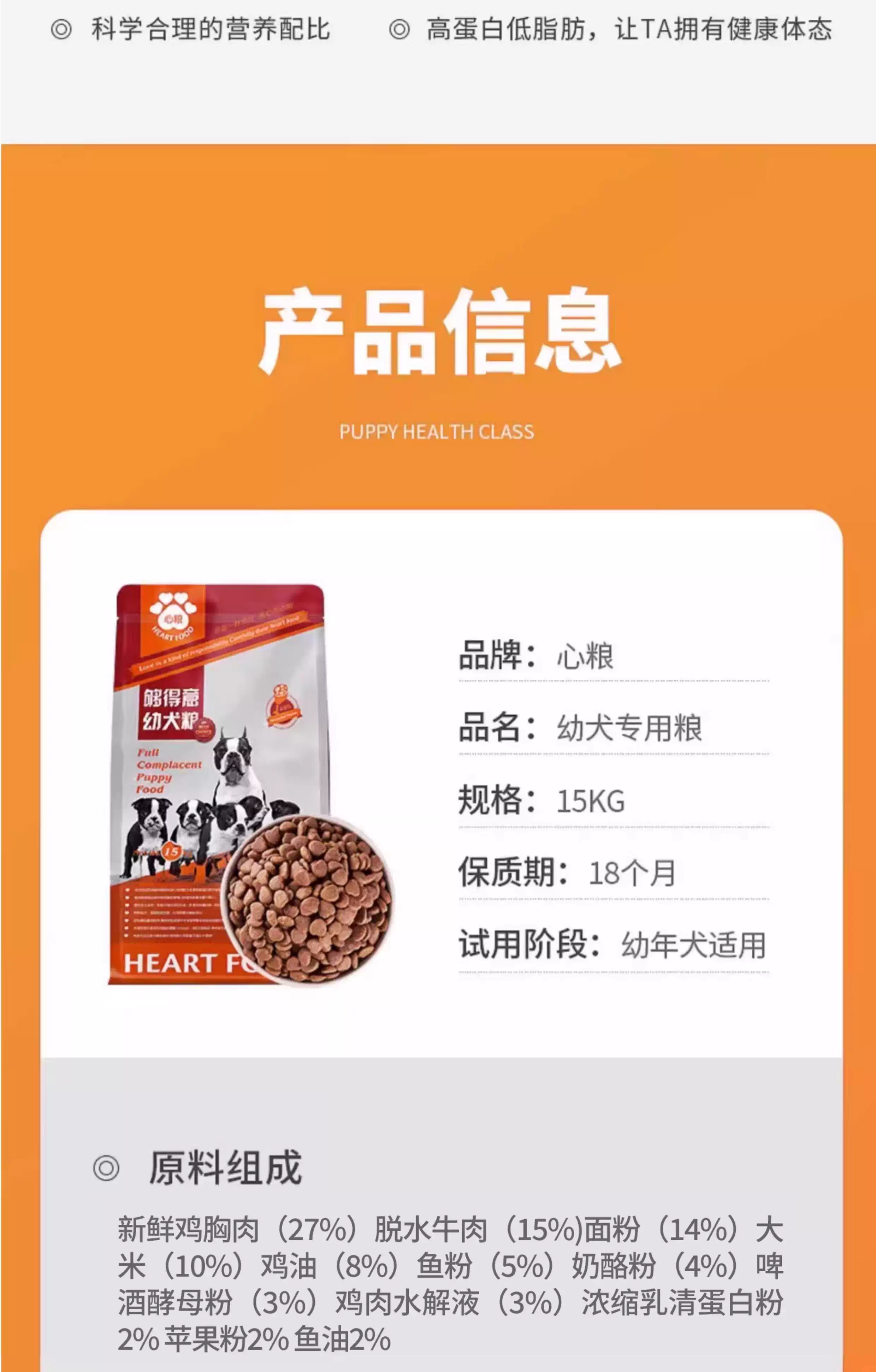 联系客服手工下单!心粮够得意全价幼年期犬粮15kg幼犬专用狗粮奶糕幼犬粮小狗小型大型犬全价幼年期犬粮心粮幼犬粮15kg