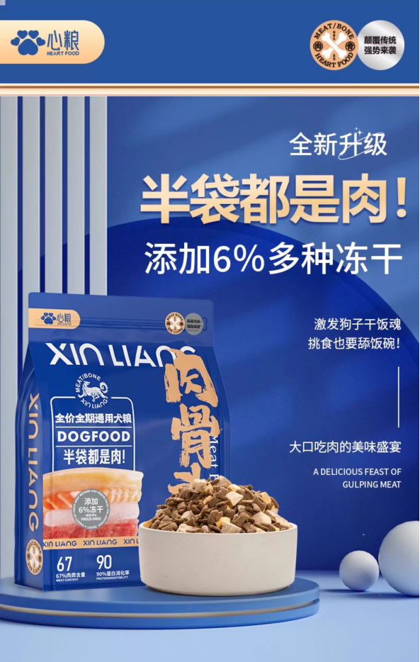 联系客服手工下单!心粮蓝袋肉骨头冻干狗粮2kg泰迪比熊小型犬中大型犬成犬全价鲜肉犬粮心粮蓝袋2kg小包装冻干多拼