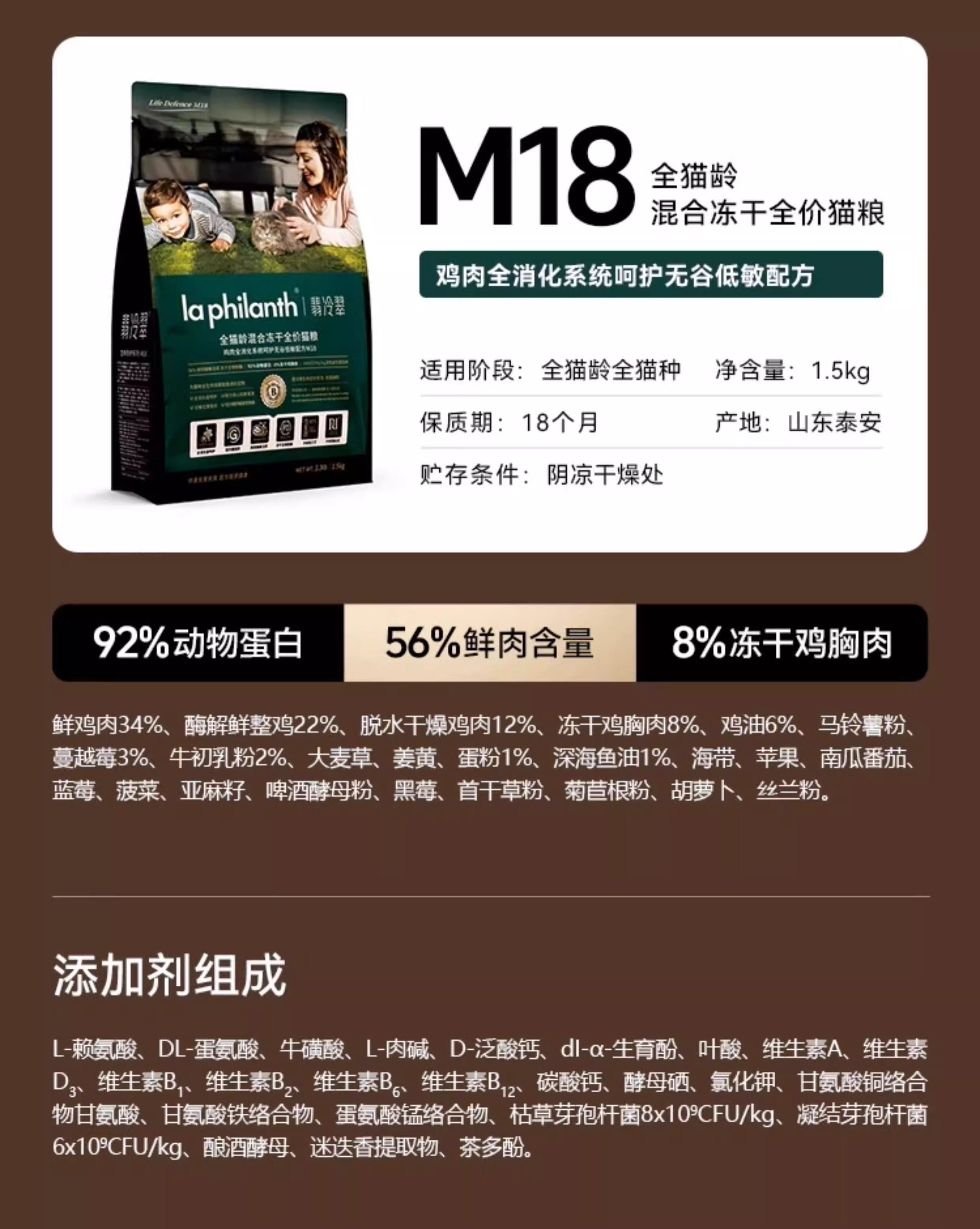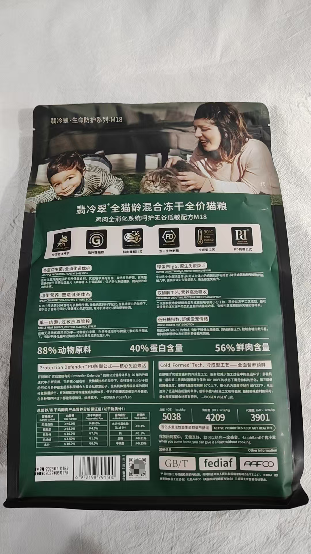 翡冷翠M18鸡肉消化猫粮1.5KG翡冷翠升级版生命防护猫粮翡冷翠冻干猫粮小包翡冷翠猫粮成猫幼猫乳鸽无谷全价猫粮1.5kg