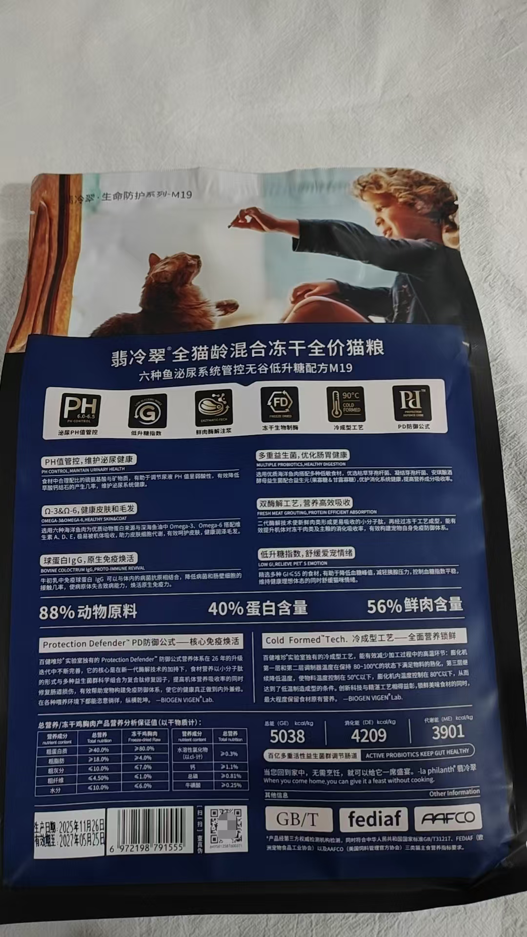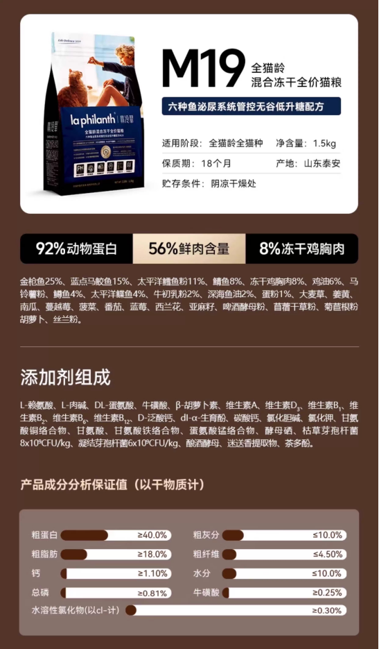 翡冷翠M19六种鱼泌尿猫粮1.5KG翡冷翠生命防护猫粮翡冷翠冻干猫粮小包翡冷翠猫粮成猫幼猫乳鸽无谷全价猫粮1.5kg