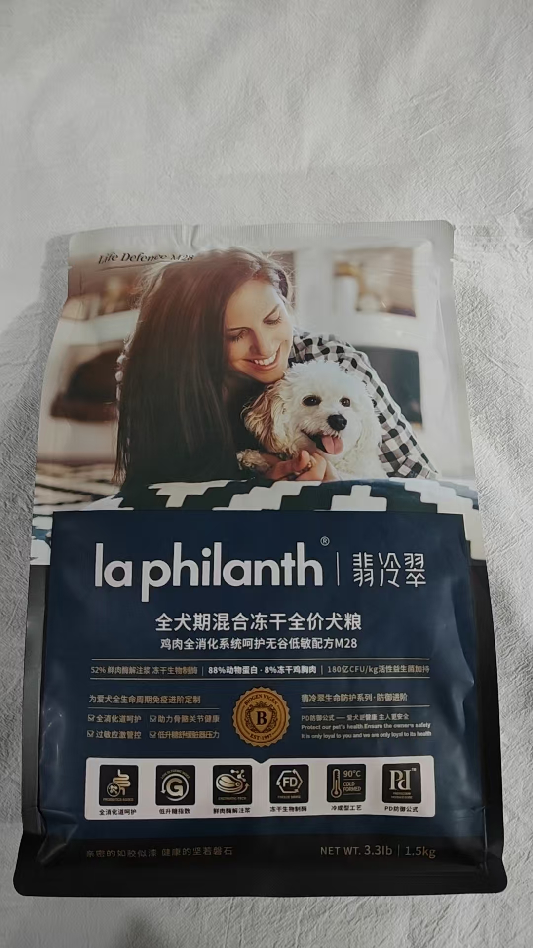 翡冷翠M28鸡肉消化狗粮1.5KG狗粮生命防护系列无谷全犬期中小型犬大型犬通用全价冻干主粮翡冷翠狗粮1.5kg