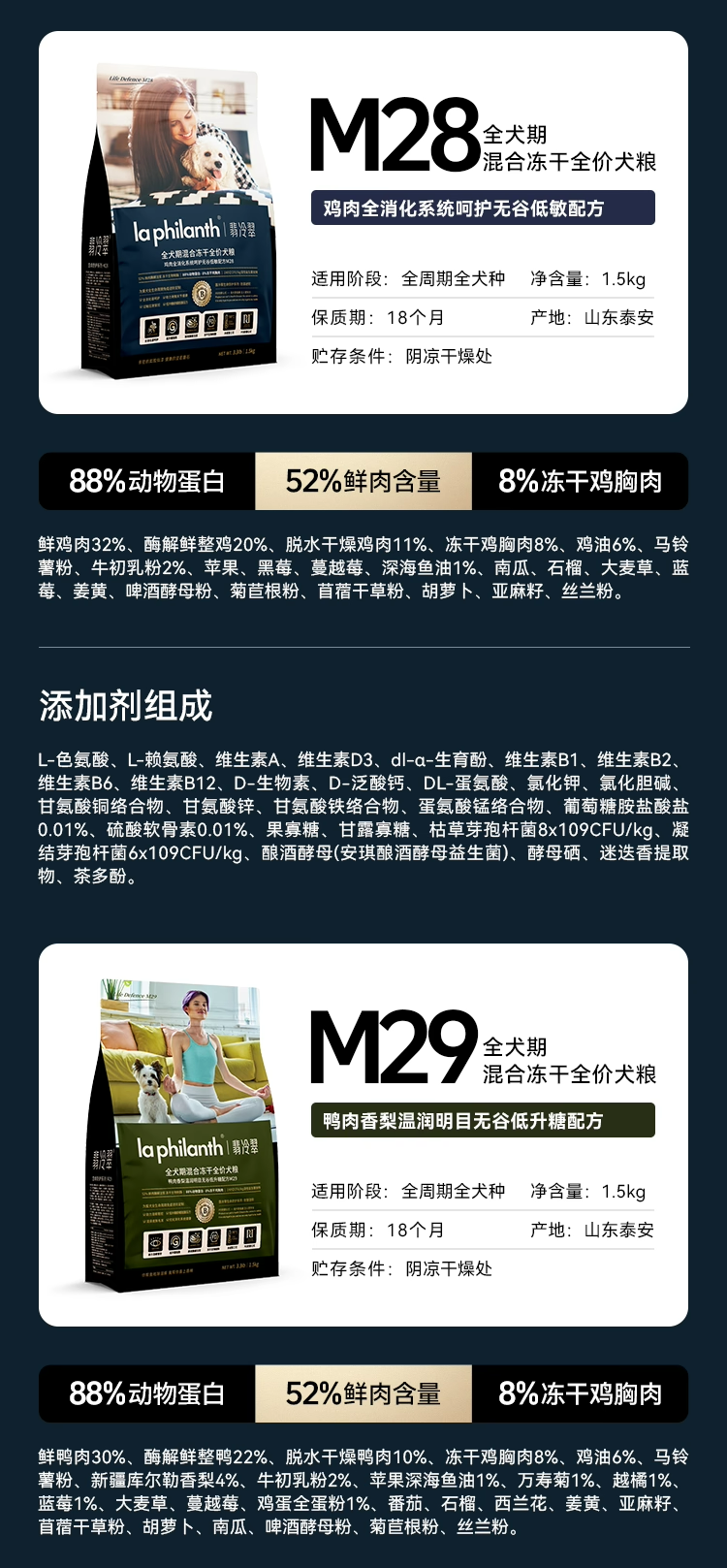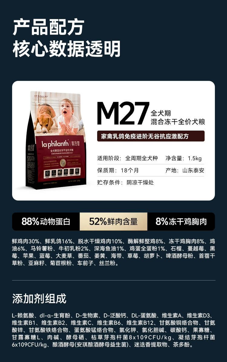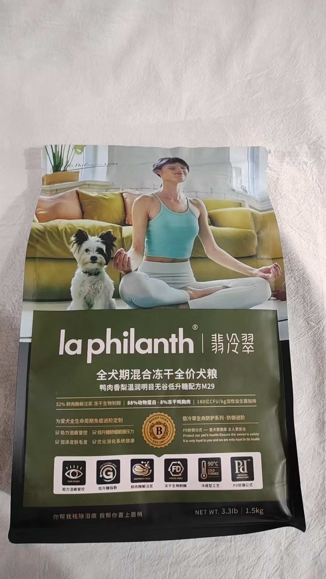 翡冷翠M29鸭肉香梨狗粮1.5KG狗粮生命防护系列无谷全犬期中小型犬大型犬通用全价冻干主粮翡冷翠狗粮1.5kg