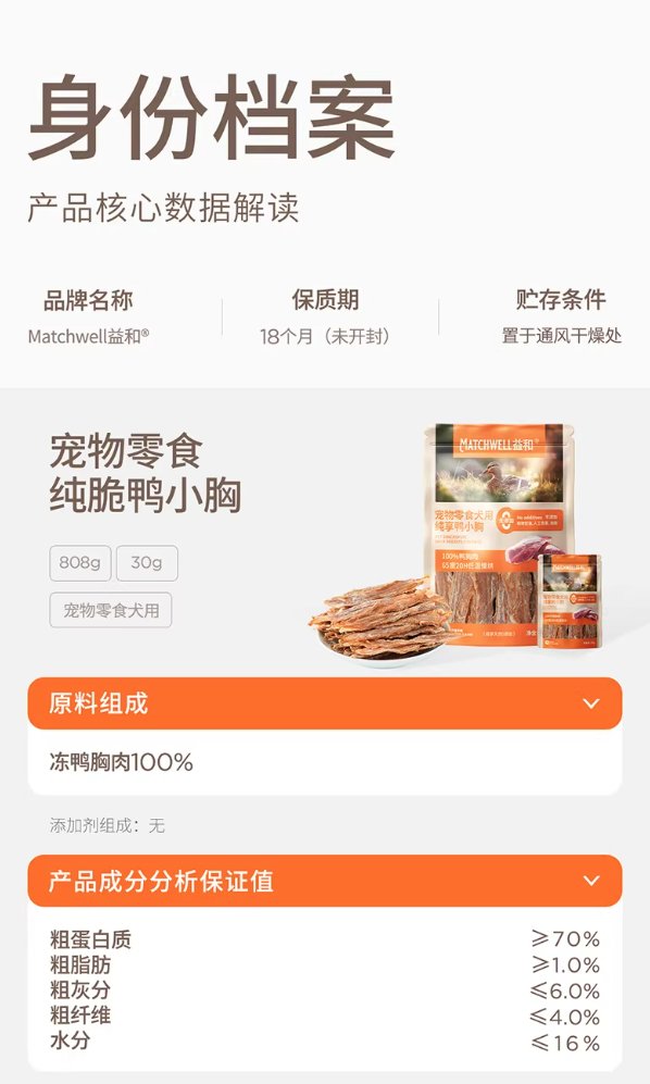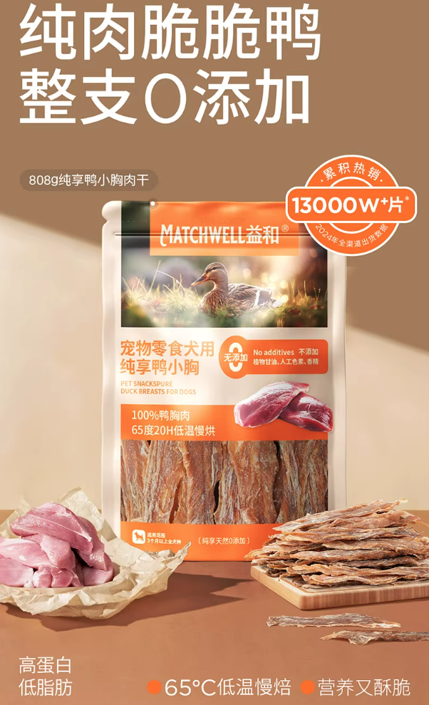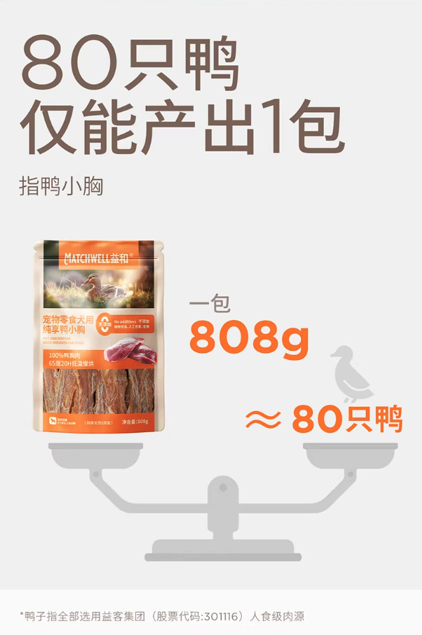 益和纯享鸭小胸808g宠物零食犬用鸭肉干鸭胸肉干天然0添加狗狗磨牙棒中大型犬小型犬通用零食肉干益和鸭肉干益和鸭小胸