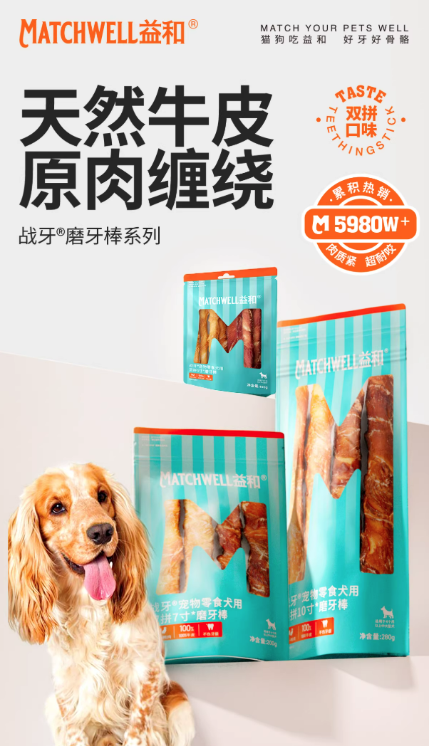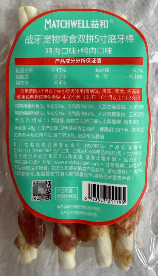 益和双拼五寸棒宠物零食5寸磨牙棒鸡肉鸭肉口味益和磨牙棒益和五寸棒犬用零食中小型犬磨牙棒战牙系列双拼混合口味磨牙棒