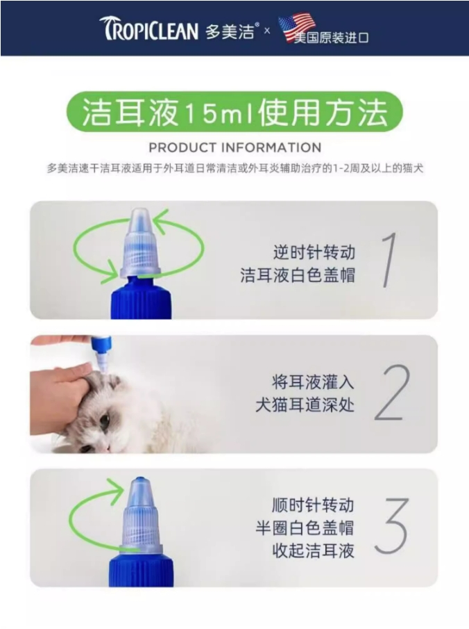 多美洁双效洁耳液15ml多美洁双效洁耳液多美洁洗耳液多美洁洁耳液多美洁速干洗耳液宠物滴耳液耳朵清洁耳螨耳漂多美洁滴耳液