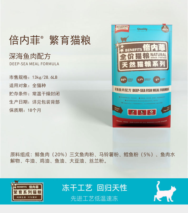 倍内菲繁育深海鱼猫粮13KG倍内菲猫粮全期深海鱼生鲜繁育13kg倍内菲深海鱼