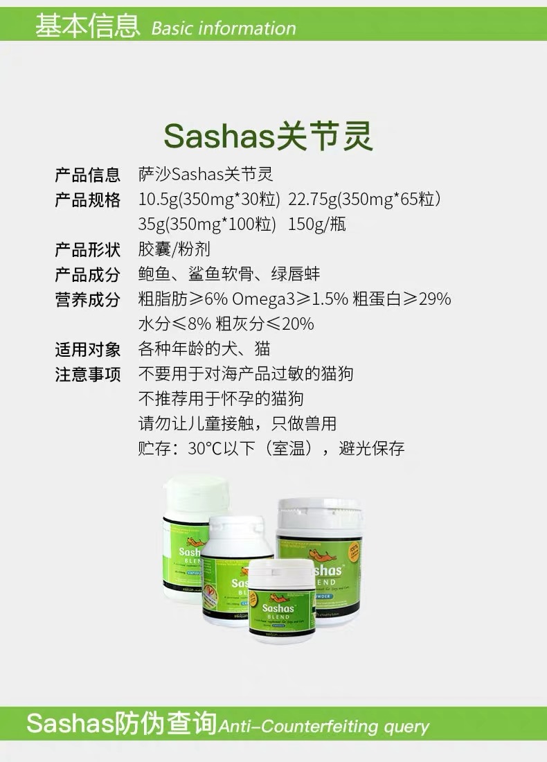 萨沙关节粉150G萨沙关节灵粉150g 修复保护宠物关节犬猫鲨鱼软骨素
