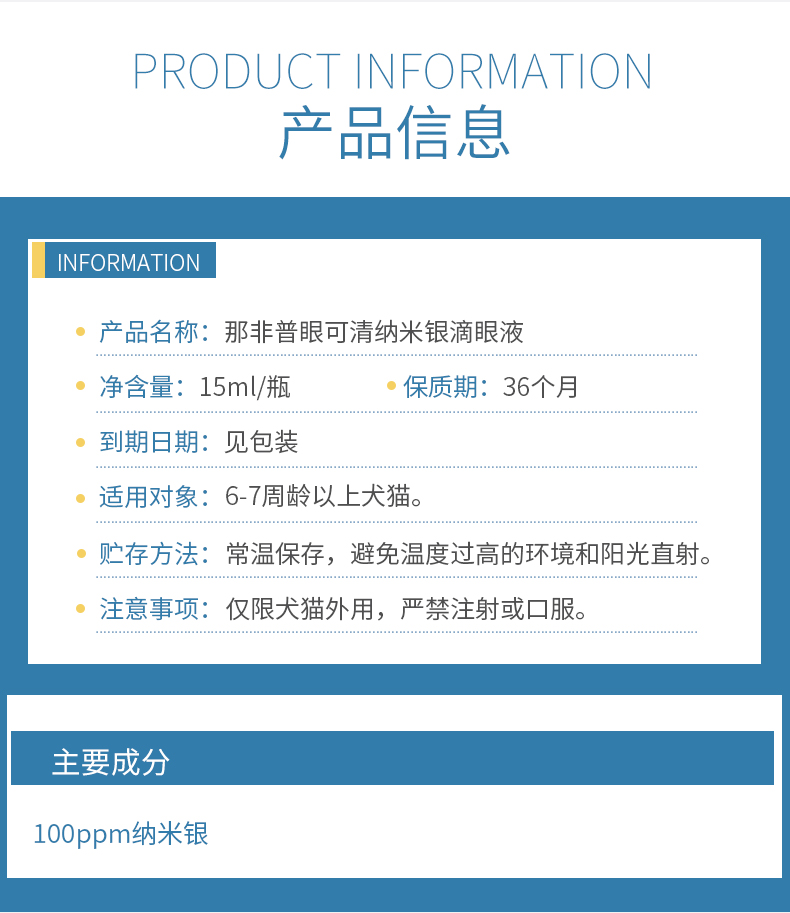 那非普滴眼液那非普眼可清纳米银滴眼液宠物犬猫狗抗菌结膜角膜炎瘙痒充血发红