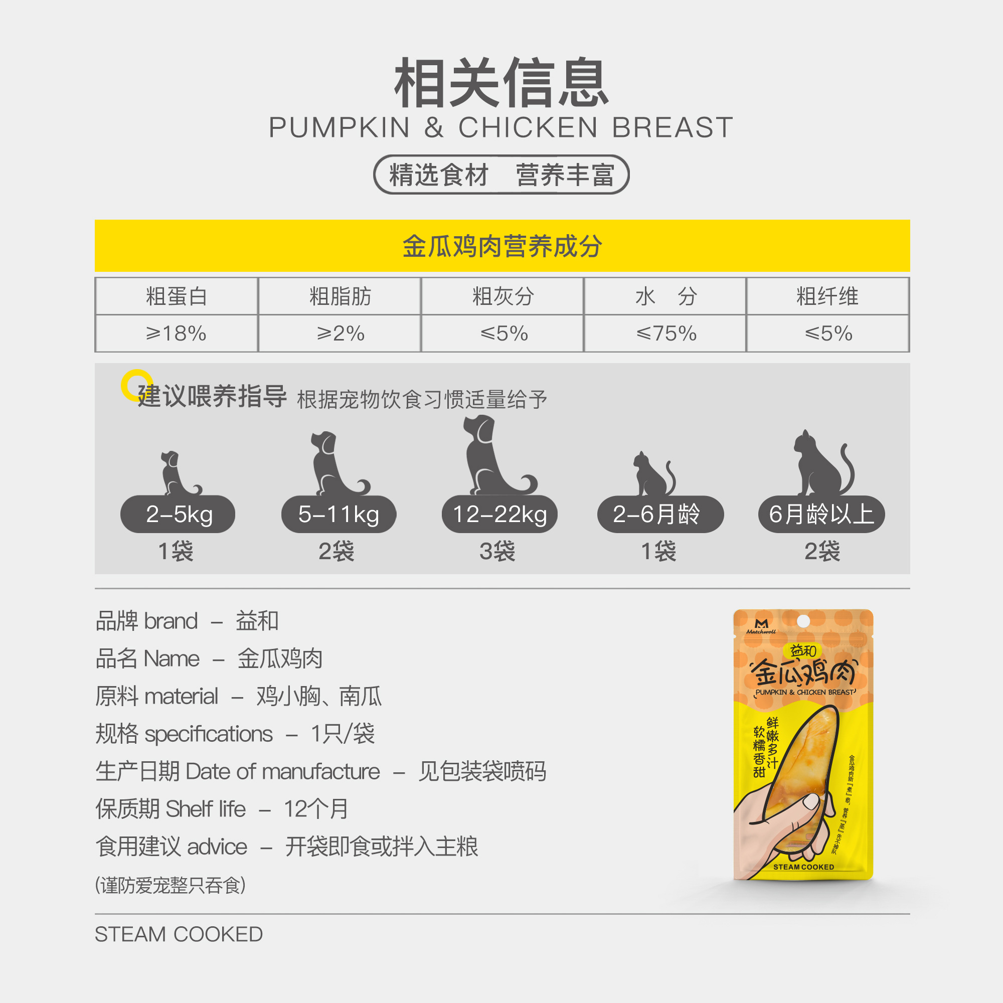 益和金瓜鸡肉狗狗零食水煮鸡胸肉猫咪湿粮营养拌粮50g