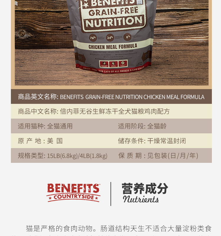倍内菲鸡肉猫粮6.8KG倍内菲鸡肉无谷天然全猫粮6.8公斤倍内菲猫粮